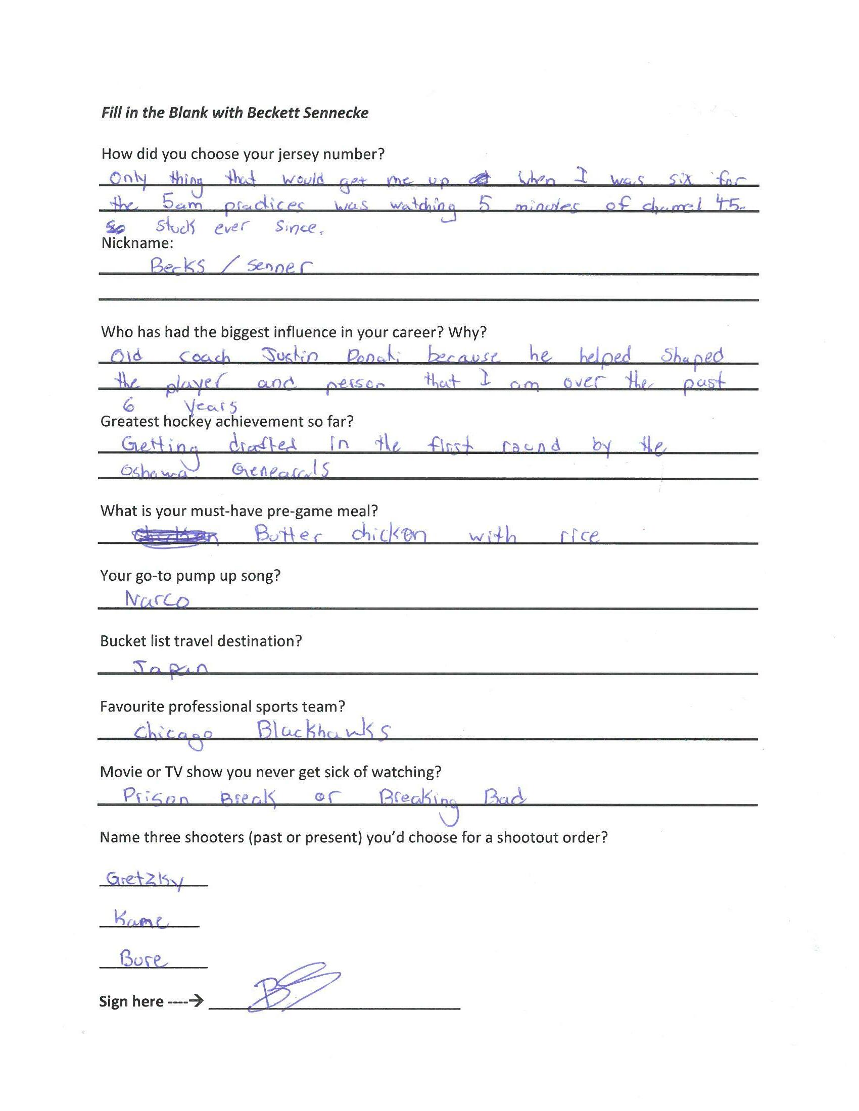 “[Being taken in the first round] it’s such a weight off your shoulders,” said Sennecke. “You finish your last game with your midget club and all you do is think about the draft every day and to hear your name finally called is such a big relief”