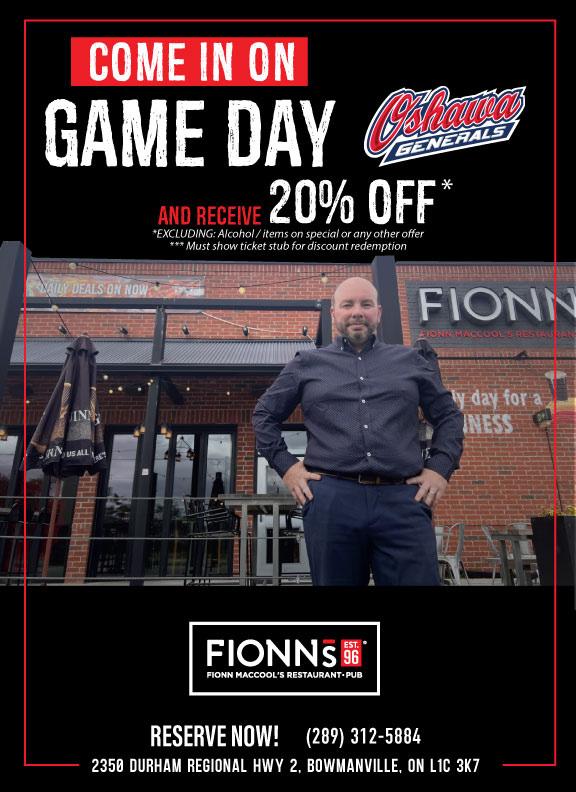 MATT BEACHIN Call 905-433-0900 Ext. 2233 or Email mbeachin@oshawagenerals.com