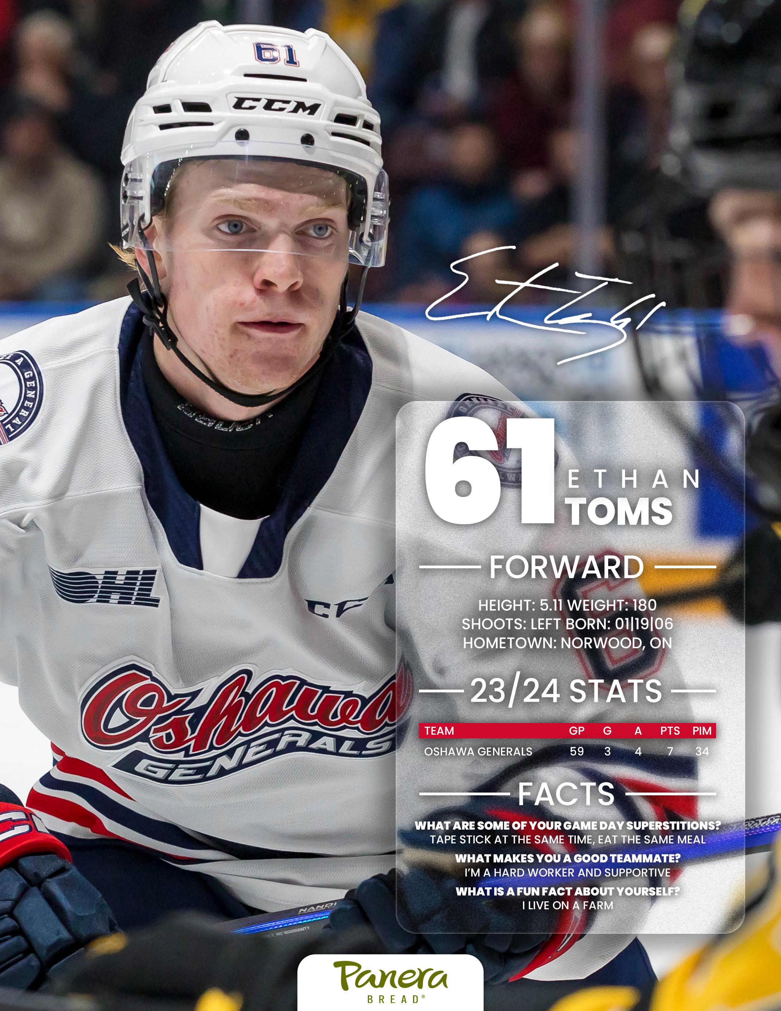 Tyler O’Toole became a fan favourite instantly when he made his debut with the Generals. After being acquired from Sarnia on Sept. 2nd, he got his first real chance in a consistent spot in the lineup, having played in 23 games so far.