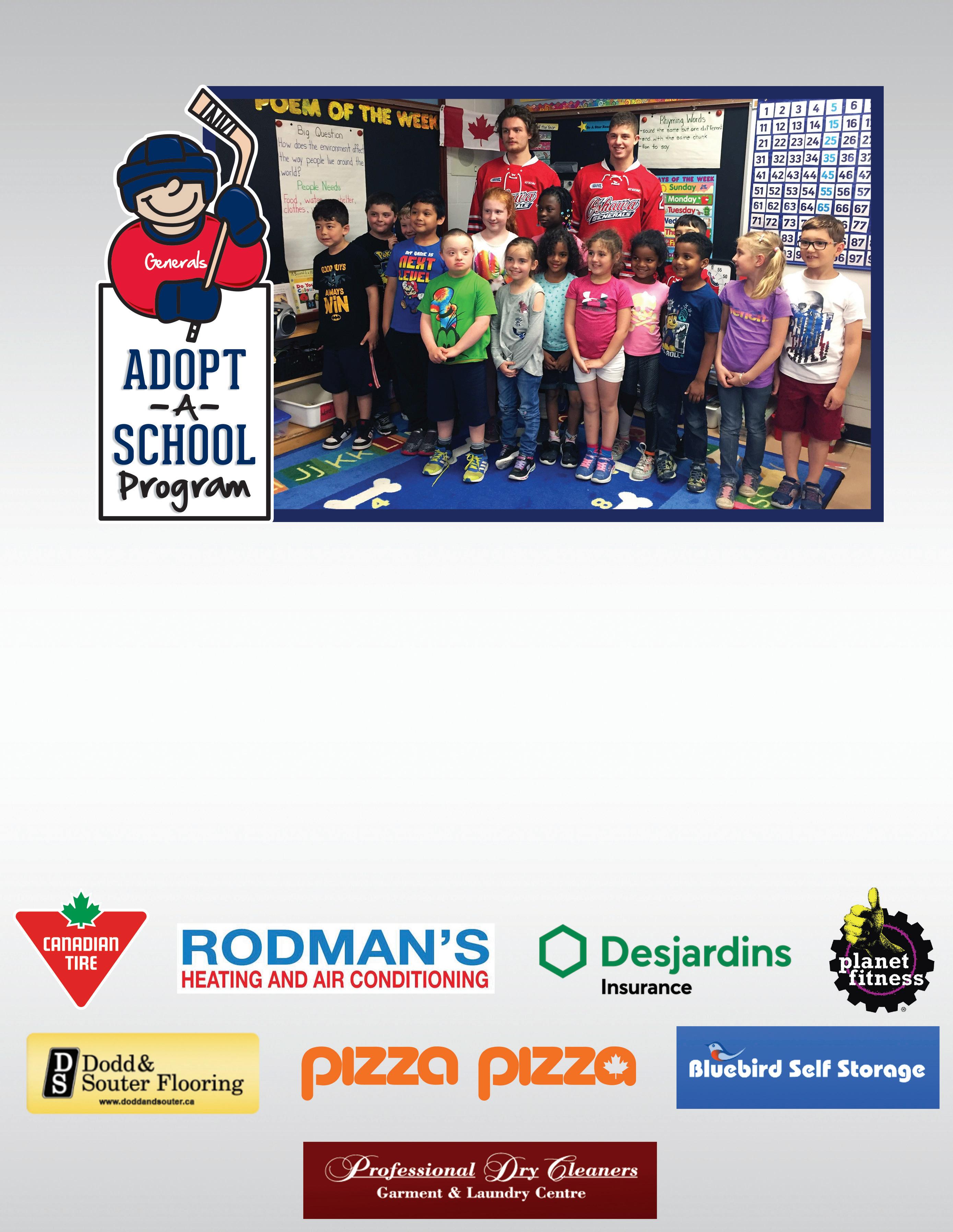 Canadian Tire, Rodman’s Heating and Air Conditioning, Desjardins Insurance, Planet Fitness, Dodd and Soutor, Pizza Pizza, Bluebird Self Storage, and Professional Dry Cleaners have teamed up for the Adopt-A-School program!