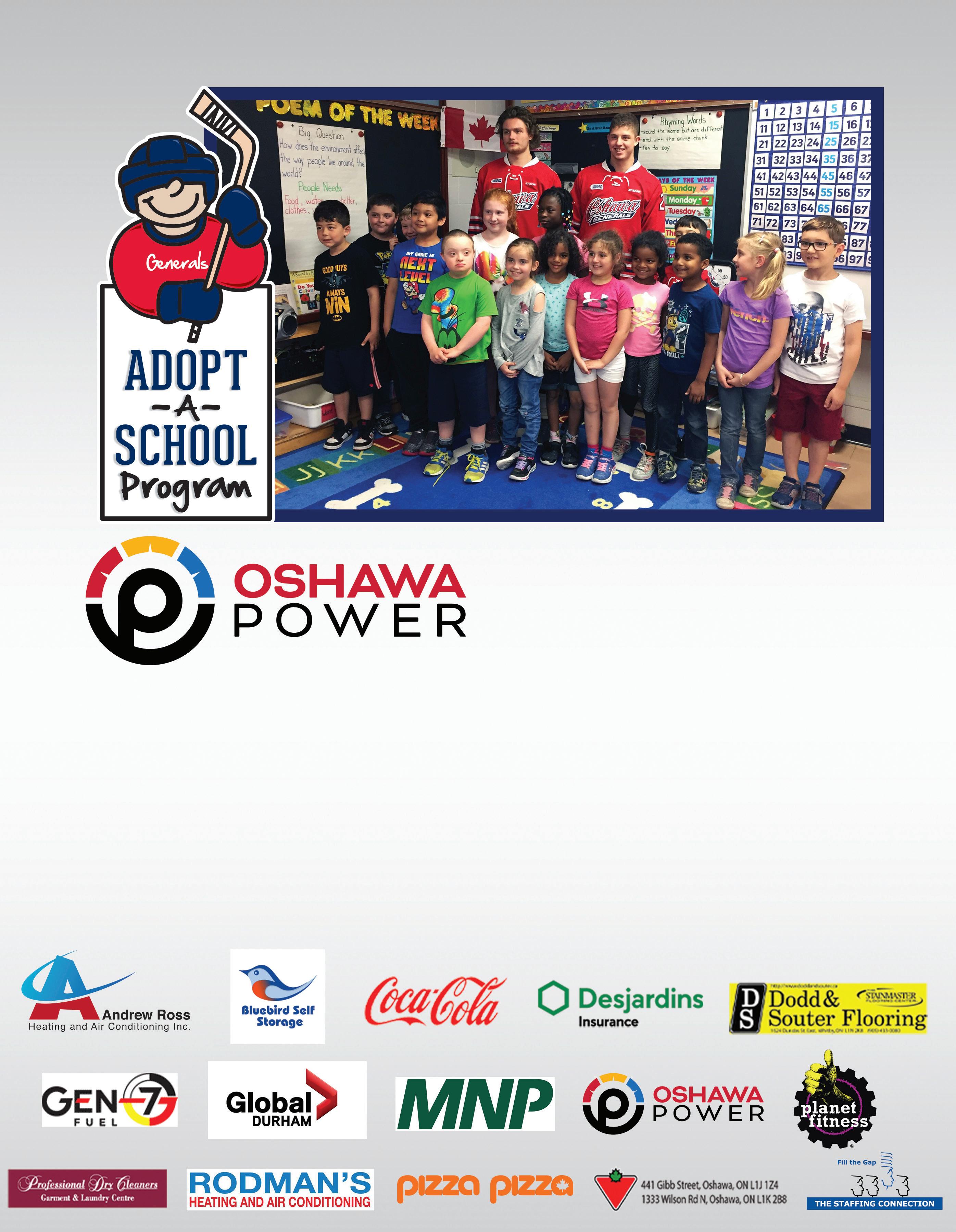 Andrew Ross Heating and Air Conditioning, Blue Bird Storage, Canadian Tire, Coca-Cola, Desjardins, Dodd and Soutor, Gen7 Fuel, Global Durham, MNP, Oshawa Power, Pizza Pizza, Planet Fitness, Professional Dry Cleaners, Rodman’s Heating & Air Conditioning and Staffing Connections have teamed up for the Adopt-A-School program!