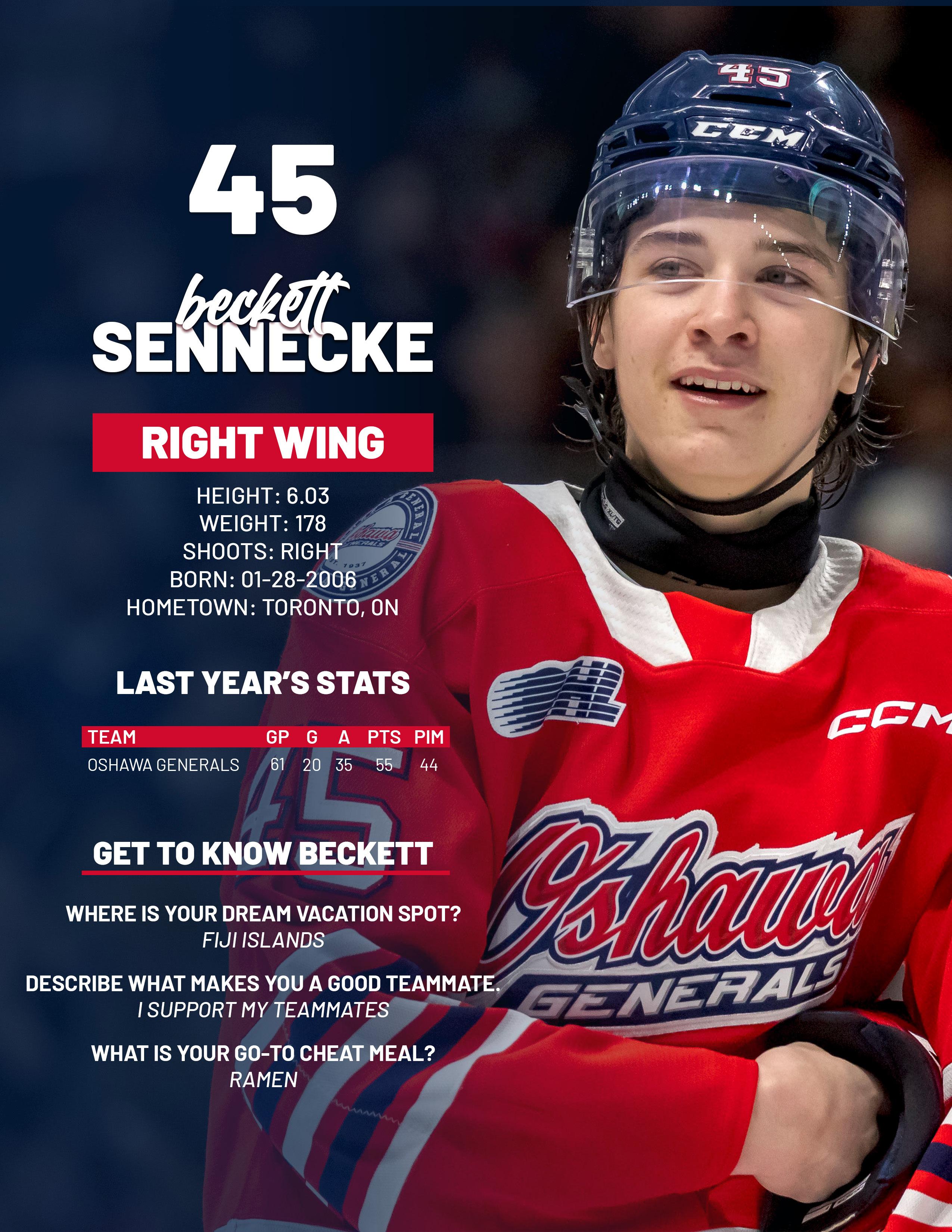 The Markham, Ont., native joins now teammates Beckett Sennecke, Ben Danford, and Calum Ritchie as recent first round selections by the Generals.