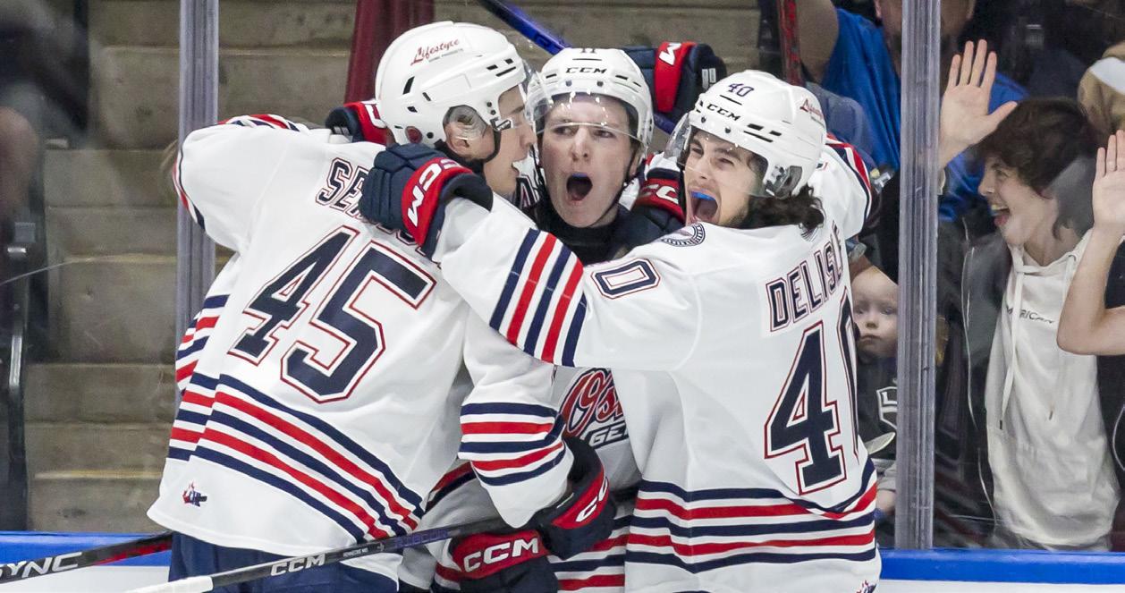 Tristan Delisle’s first OHL goal and Nikita Tarasevich’s first as an Oshawa General lift the team to a 5-4 win over the Kingston Frontenacs in Sunday night’s home opener. After the Frontenacs tied the game early in the third, it was the rookie Delisle who put the Gens in front before a much-needed insurance goal from Tarasevich pushed the Gens to win their first home opener since the 2019/20 season.
