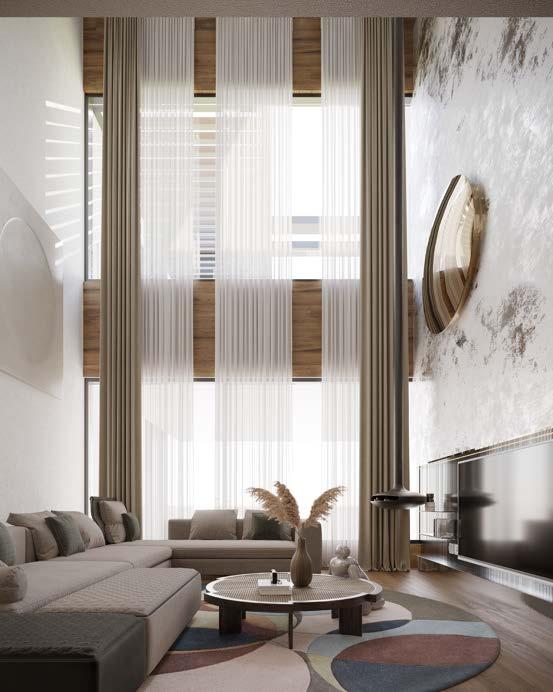 Building upon this framework, the atmospheric direction explores how light interacts with texture, neutral materials, and subtle cultural references. The resulting environment is guided by luminosity and shadow rather than ornamentation, allowing natural light to articulate space, depth, and identity.