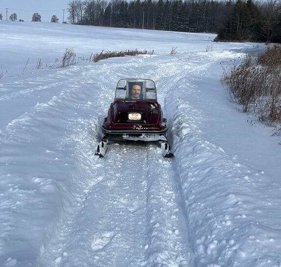 What a great day ! November 20th we got a nice shot of snow ….took my buddy Ron Burgundy out for a rip !!! He’s a 1981 yamaha enticer DELUXE… the colour of the sled gave us the name !