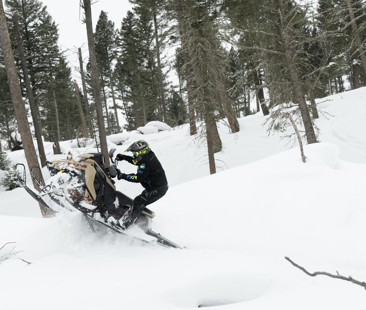 all kinds of other great things like 146 or 154inch track options, deep snow running boards, and the adjustable brake lever system which is available on multiple models. The Sport and Adrenaline are the in-season models and X and X-RS are springonly. The Backcountry in the Gen4 was already possibly the most capable 50/50 crossover sled, and now with all the Gen5 upgrades it will certainly top most on/off trail rider’s lists.