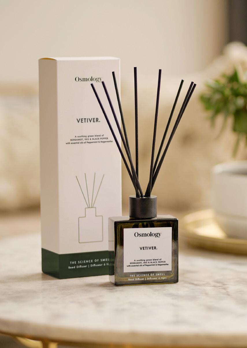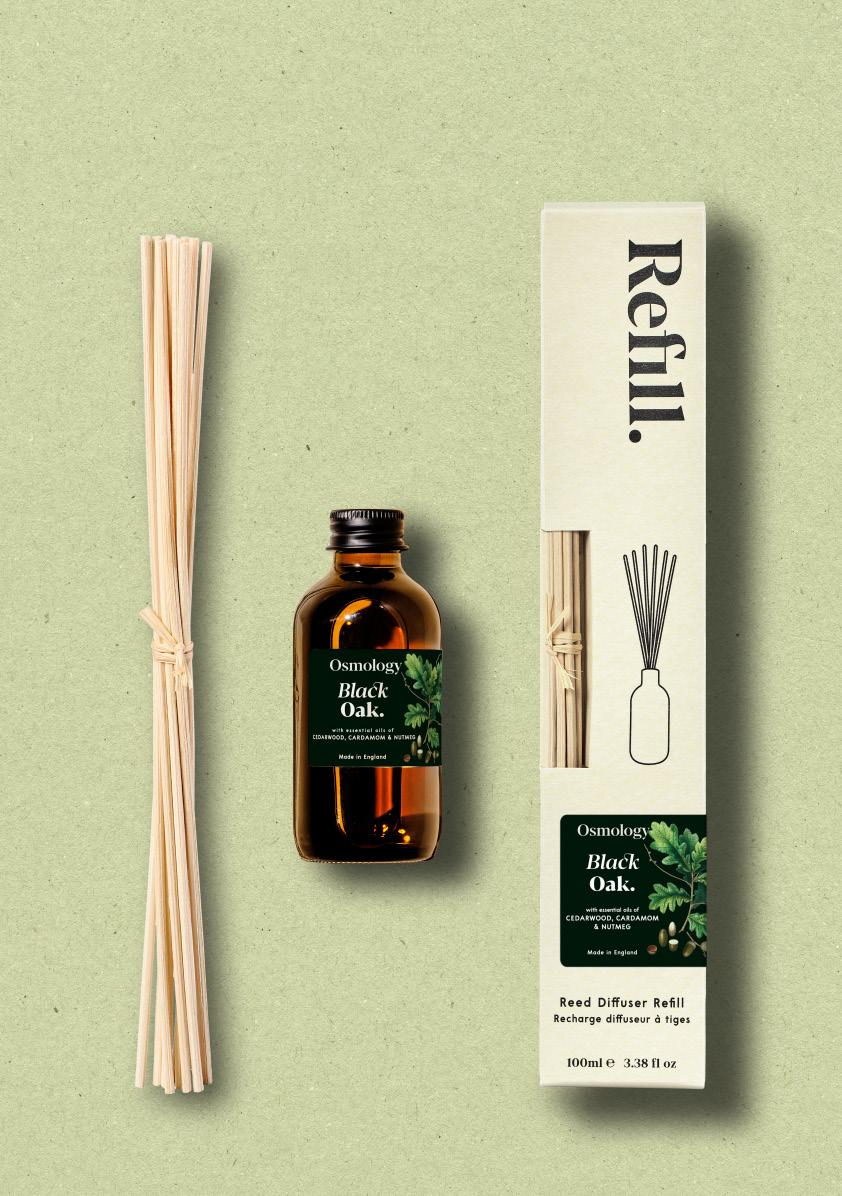 Introducing 9 brand new scents packed with complex fragrances. In rich green reimagined square 5 fl oz diffuser bottles with black reeds and lid.