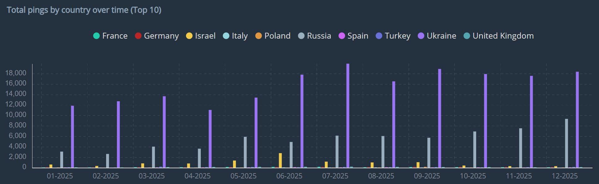 Osprey recorded a total of 287,335 incidents in the EUR/NAT region during 2025. The top three countries by number of incidents were Ukraine ( 189,948), Russia ( 66,316), and Israel ( 11,345).