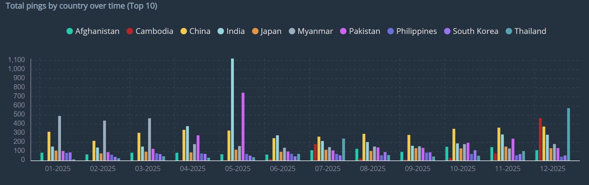 Osprey recorded a total 22,312 incidents in the APAC region during 2025 The top three countries by number of incidents were China ( 3,689), followed by India ( 3 ,583) and Myanmar ( 2 ,844)
