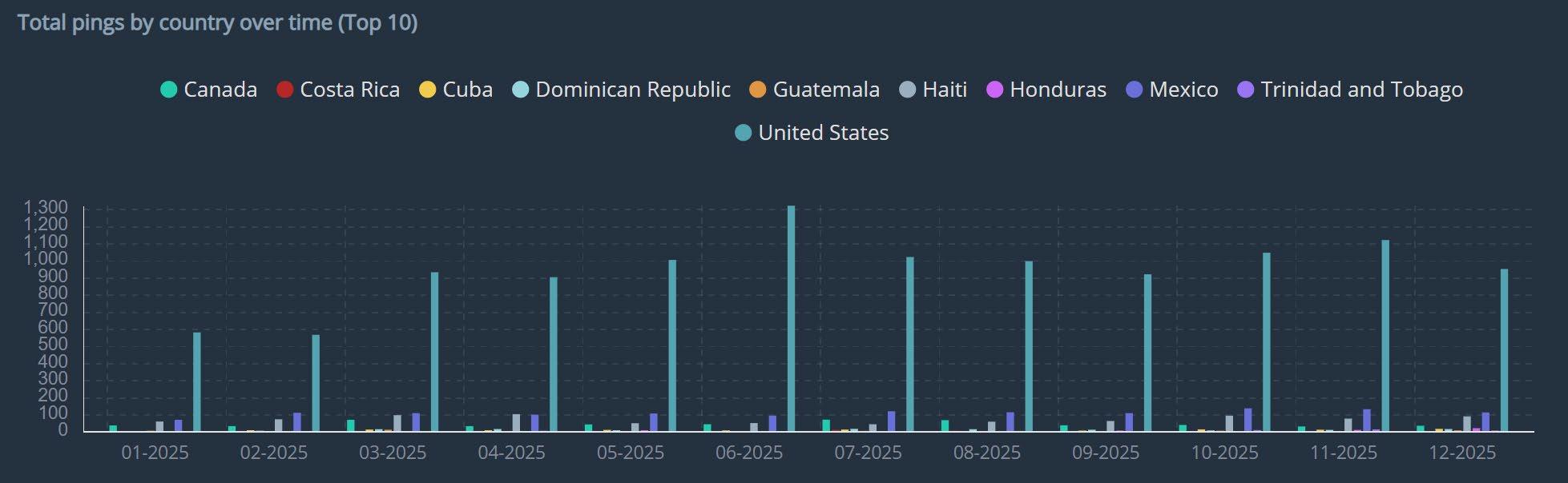 Osprey recorded a total of 15,153 incidents in the NACC region during 2025 The top three countries by number of incidents were the United States (US) ( 11,397), Mexico ( 1 ,340) and Haiti ( 885)