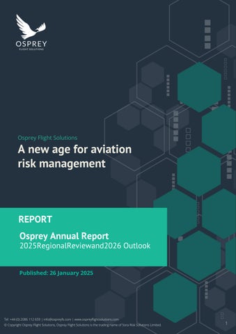 Founded in 2017, Osprey fuses real-time information, technology and industryleading expertise to deliver the most advanced aviation risk analysis available anywhere. Our revolutionary data-driven approach provides instant situational intelligence to power dynamic decision-making Being able to see, understand and react to threats as they emerge sets a new standard for ensuring the safety and security of passengers, crew and aircraft Because risk isn’t static in a fastmoving, turbulent world