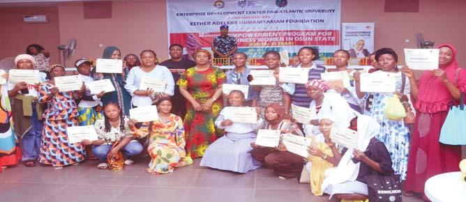 • Wife of the Governor, Erelu Ngozi Adeleke in a group photograph with graduant of SMEs training program for business women in Osun