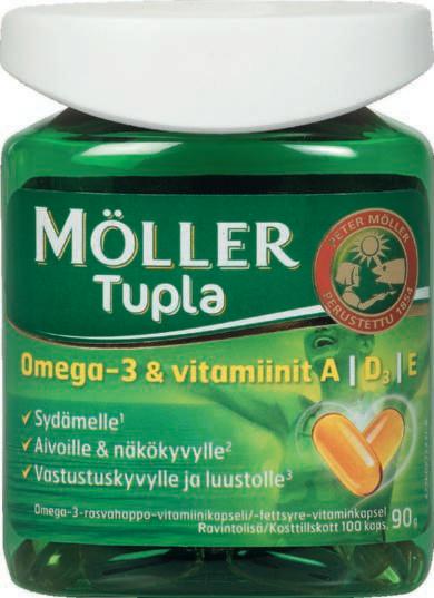 EPA ja DHA (250 mg/vrk) edistävät sydämen normaalia toimintaa. DHA (250 mg/vrk) edistää aivotoiminnan ja näön pysymistä normaaleina.