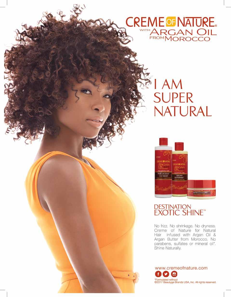 Celebrate Natural hair! Creme of Nature proudly introduces a new line of Argan Oil From Morocco products made especially for Natural hair. This line includes their Moisture & Shine Curl Activator Creme, Flexible Styling Snot, and Apple Cider Vinegar Clarifying Rinse Encourage your customers to try something new today. www.cremeofnature.com