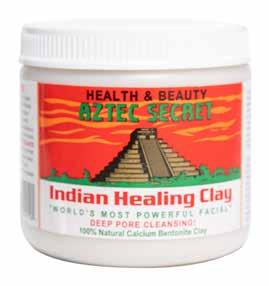 Aztec Secret Indian Healing Clay is a deep pore cleansing facial, hair, and body mask. It is 100% Natural Calcium Bentonite Clay that’s great for facials, body wraps, clay baths, foot soaks, hair masks, chilled clay knee packs, insect bites, and more.