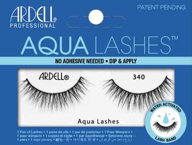 • The lashes are lined with adhesive that is activated by water • Application in 2 easy steps – 1. dip lash band in water 2. apply to lash line • Beautiful, lush styles in natural to dramatic looks • Lashes have tapered tips and a black band mimicking the look of eyeliner • Available in 6 styles • Lashes may be reused with traditional adhesive application