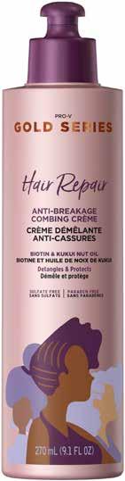 Detangling can be painful for your scalp and tresses when the hair is weak or dry. With the Gold Series Hair Repair Anti-Breakage Combing Crème, detangling breakage is a thing of the past. The Biotin and Kuki Nut-infused crème will provide deep moisture for easy combing and detangling for 69% less breakage.