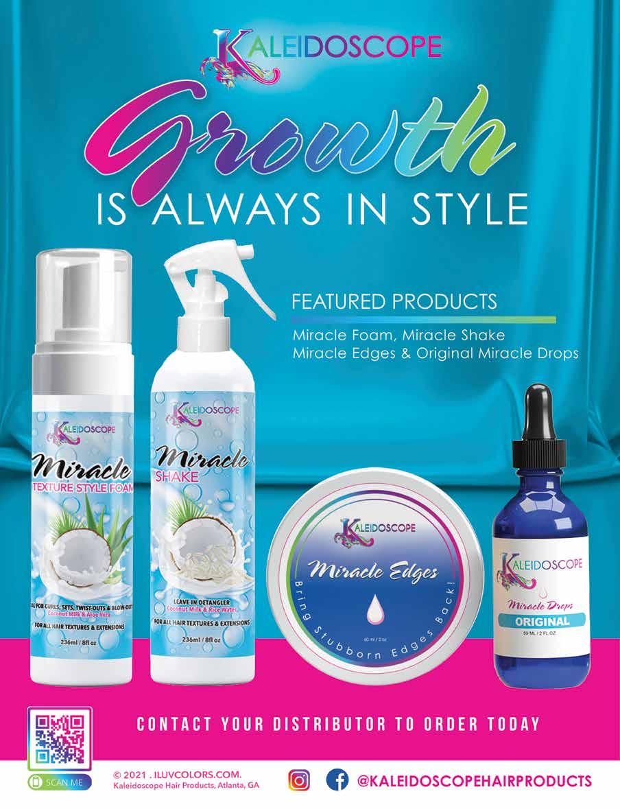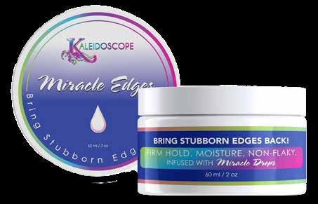 Right now, customers are having fun experimenting with their edges to create swoops and swirls - otherwise known as “baby hair.” Kaleidoscope gives them an edge gel formulated with the power of its growth-stimulating Miracle Drops to achieve the look they want while maintaining or restoring their hair health.