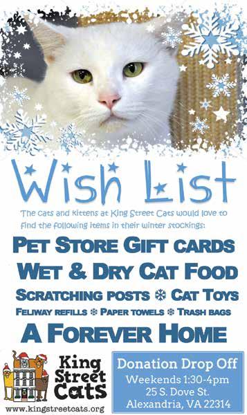 King Street Cats 25 S. Dove Street Alexandria, VA 22314 703-231-7199 kingstreetcats.org/ About the Author: A lover of all things Christmas, cats, and cycling, Kristen Bieling eagerly counts down to December 25th each year. She lives in Arlington with her 2 cats, Atticus and Harrison. They make the rules and she just follows them.