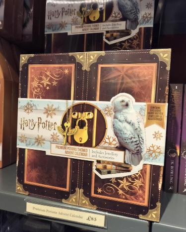 Oheisessa kuvassa komistelee HARRY POTTER -LIEMIJOULUKALENTERI, kaikkien lasten unelma. Oikeasti kyseessä on Harry Potter –aiheinen korukalenteri, mutta ei sillä niin väliä. Kukapa ei haluaisi olla oman elämänsä velho! Vaikka kalenteri onkin 120 €, on se todellakin hintansa väärti. Joten porvarilapset – loitsut tu-
