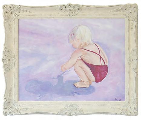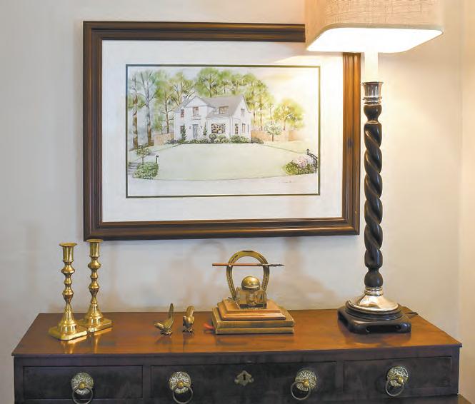 paintings of the Betheas’ son and middle daughter that Tumpy herself painted add color to the walls. Also upstairs, art depicting the house itself captures a moment in time in the 1980s, when it was painted grey with blue trim, and their daughter’s tricycle sat out front.
