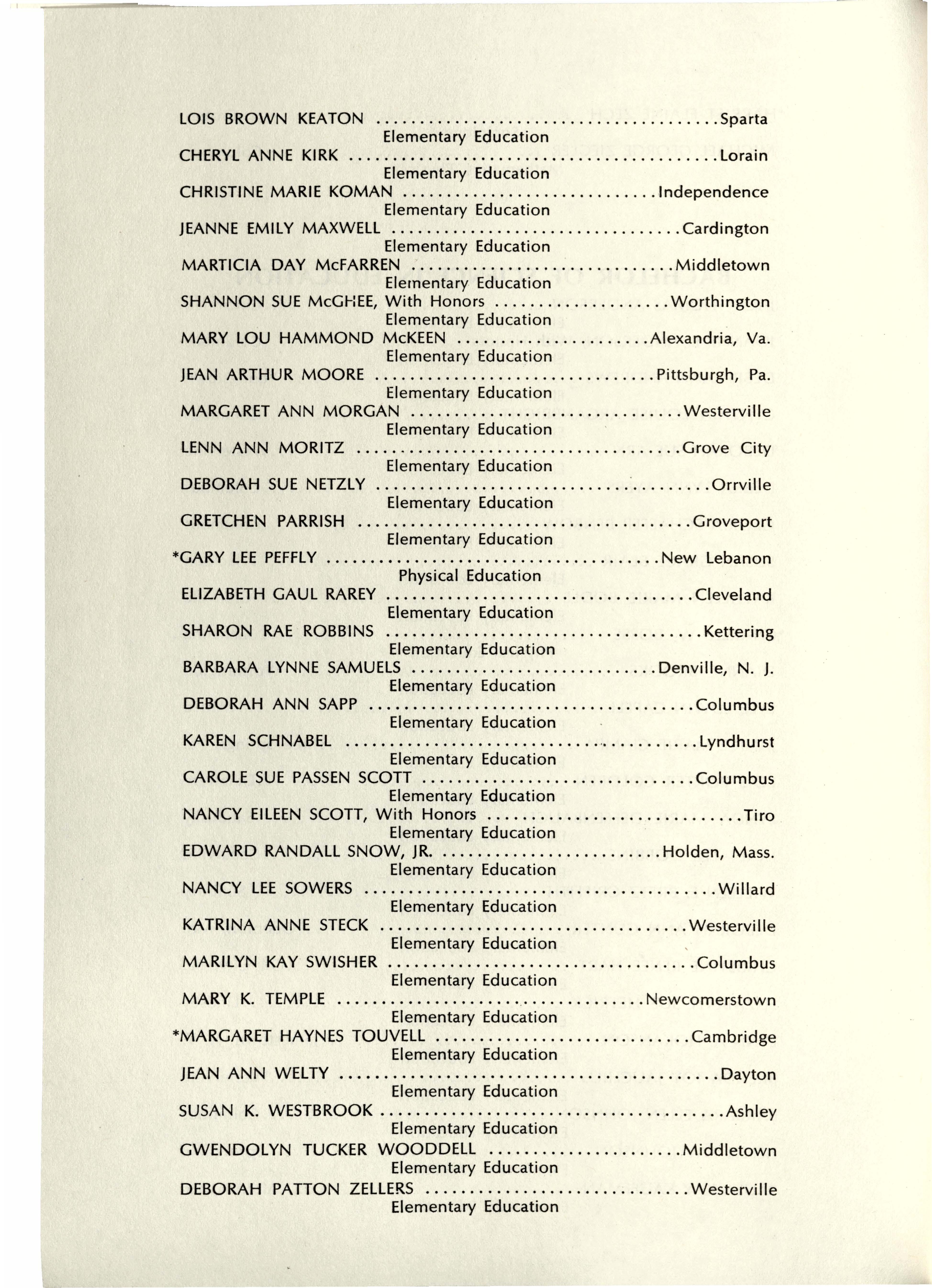 M. KATHERINE McLEAD BARGAR, With Honors Kilbourne Physical Education