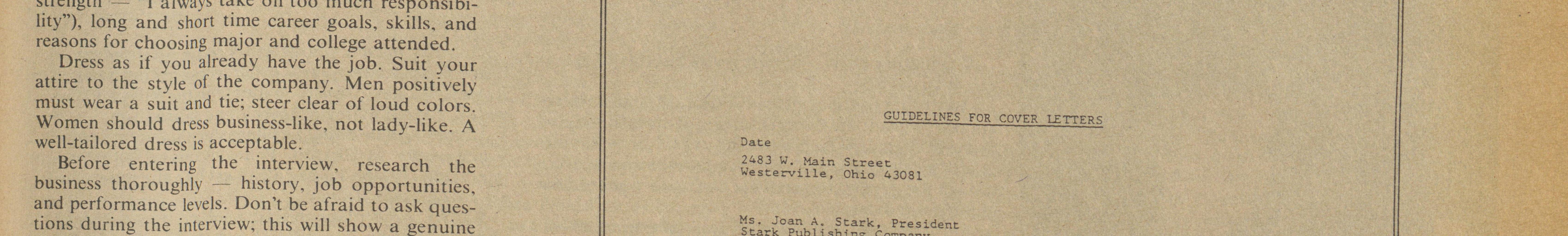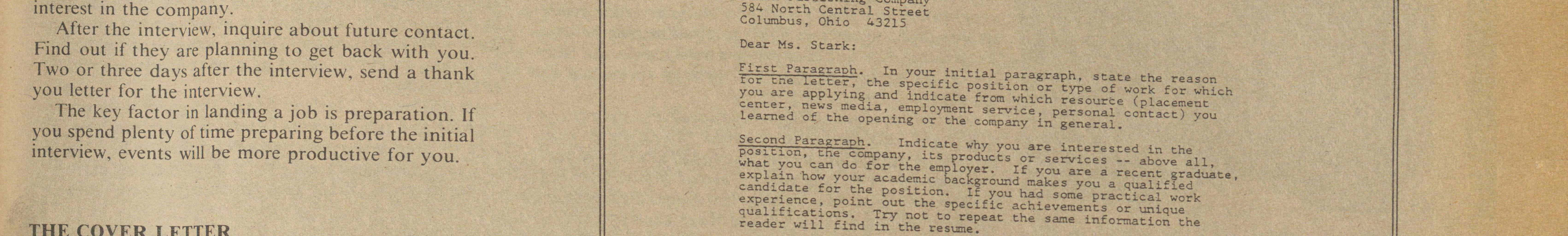 According to Marlene Suter, director of Career close your letter with a statement or question which will en courage a response. For example, state that you will be in the Planning and Placement Services, three areas must area where the company is located on a certain date and would like to set up an interview. Or state that you will call on a be covered in the cover letter: who you are, request of certain date to set up an interview. You can ask if the company an interview. and skills you possess necessary for the will be recruiting in your area, of if it desires additional information or references. job. Be assertive in pointing out these areas. Use a