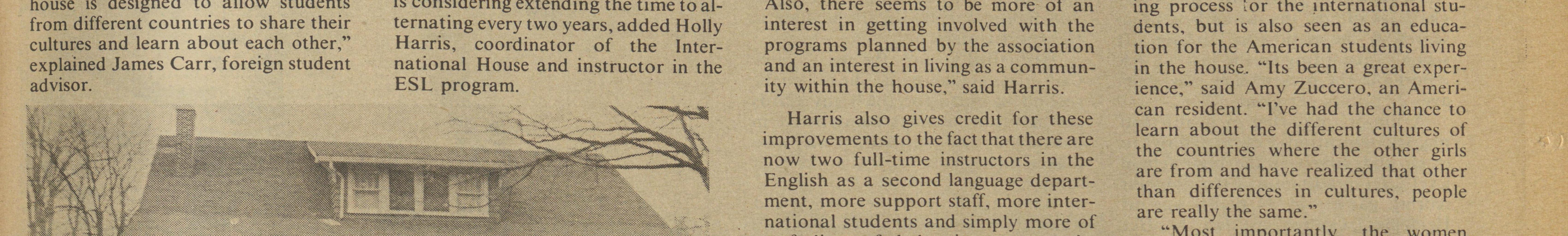 The women are also helping to improve the activeness of international students on campus, said Harris. "The International Student Association is meeting more frequently at the house. Also, there seems to be more of an interest in getting involved with the programs planned by the association and an interest in living as a community within the house," said Harris.