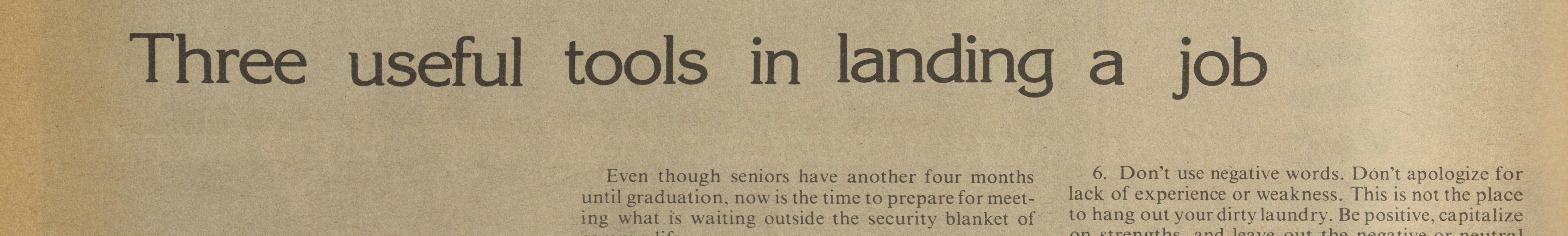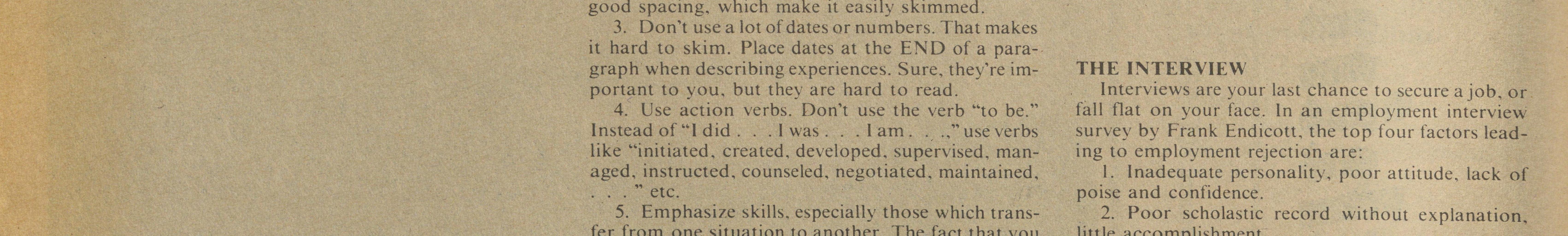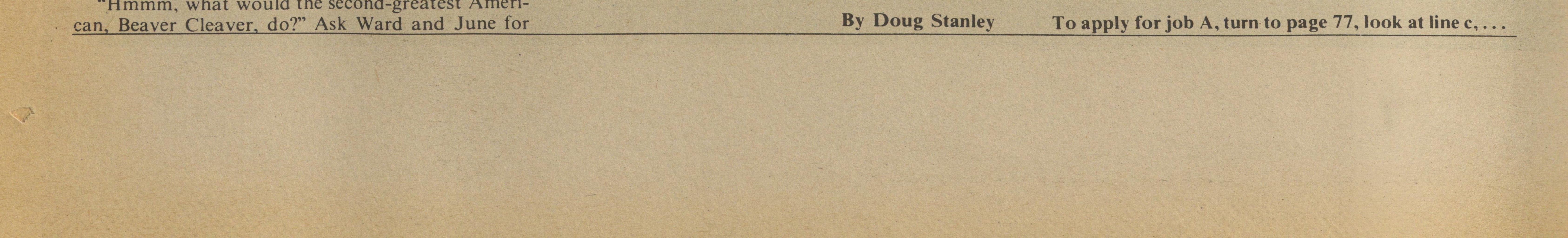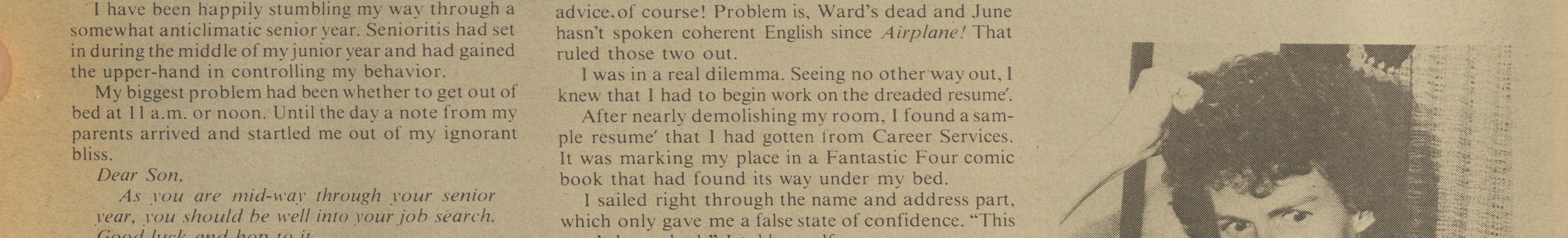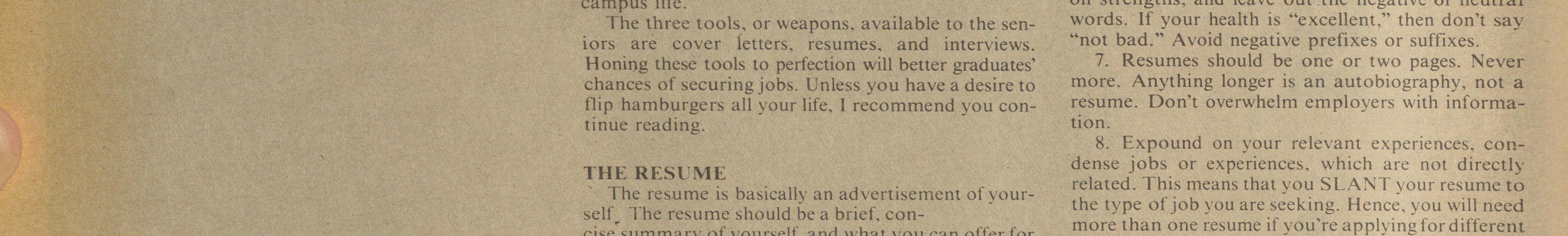 Next step - career objective. OMIGOD! Career objective - whadda ya mean I'm supposed to know what I want to do. I've had nine majors in four years. I'm really not sure about anything. The last thing I was reallv sure about was that Lou Grant would run forever and you know what happened to him. l opened a beer. "What am I gonna do now?" Just then a voice whispered in my ear.