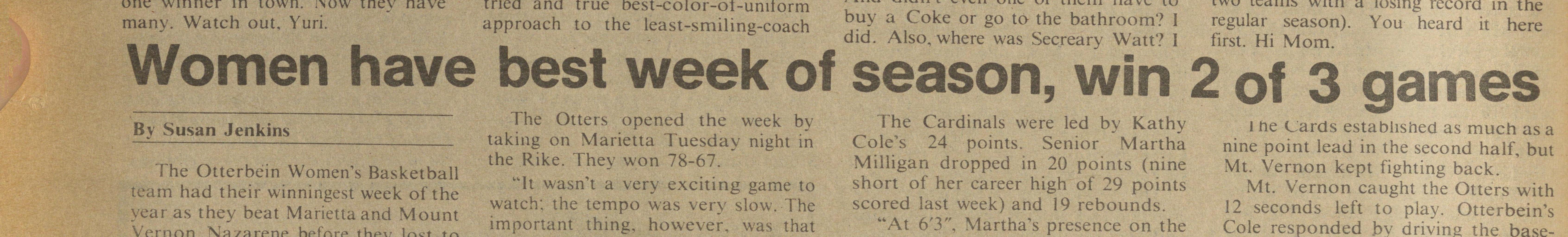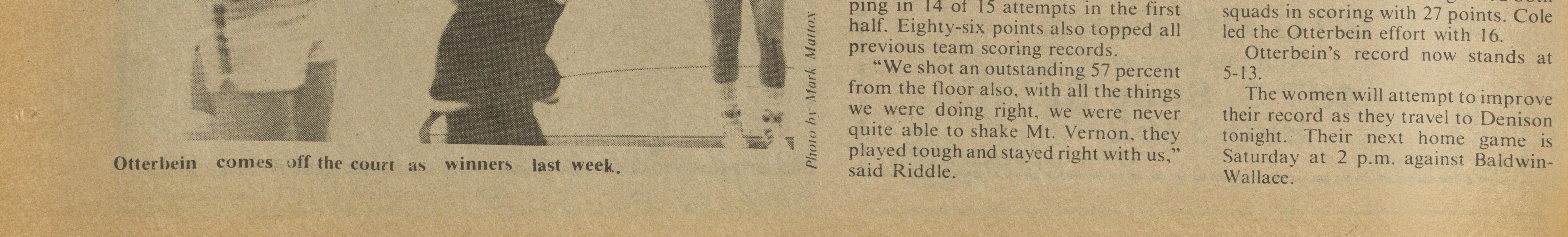 In her second year of playing wo- basketball career. Besides being most men's basketball at Otterbein, Kathy valuable player. she was first-team Cole has done much to make her team- all-state in the coaches' poll, on the mates proud of her. first-team all-metropolitan team