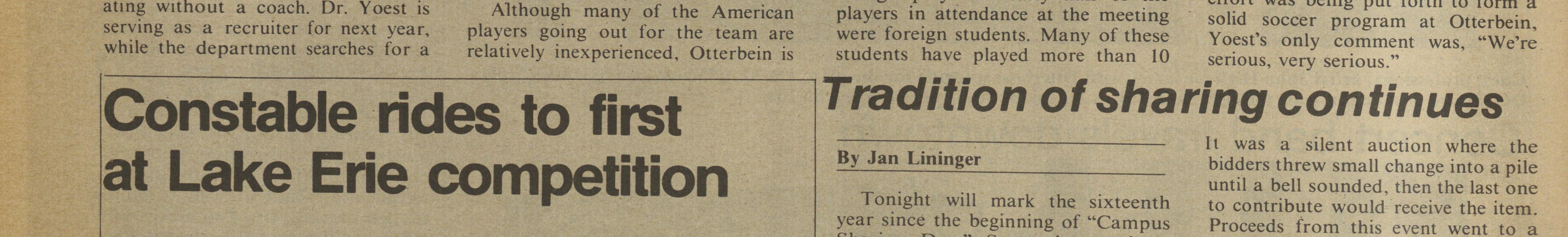 Tressler said she feels there have been no major disadvantages in her decision. The only things she did not get to do while at Otterbein that she might have liked to have done was to run for a head resident's position, now called hall directors, or maybe to have run for president of her sororitv. Tressler was a resident assistant for two vears while at Otterbein and a member of Sigma Alpha Tau sorority.