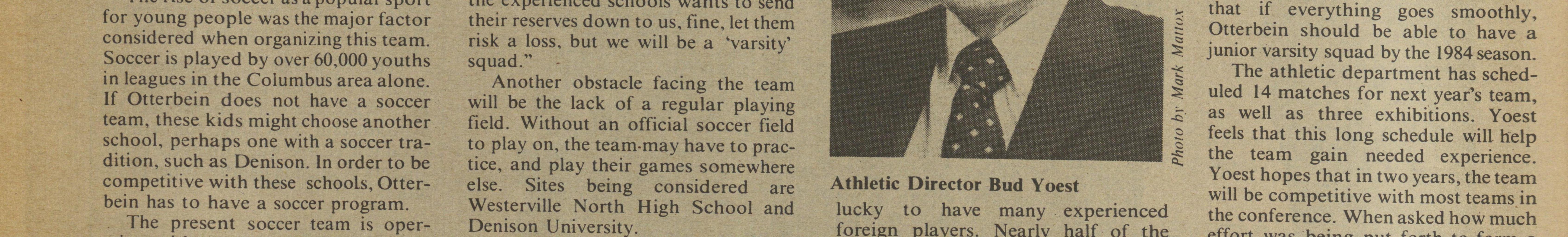 After a meeting Wed., in which 19 arrives," said Yoest. soccer. students expressed interest, Athletic Although the team will be in