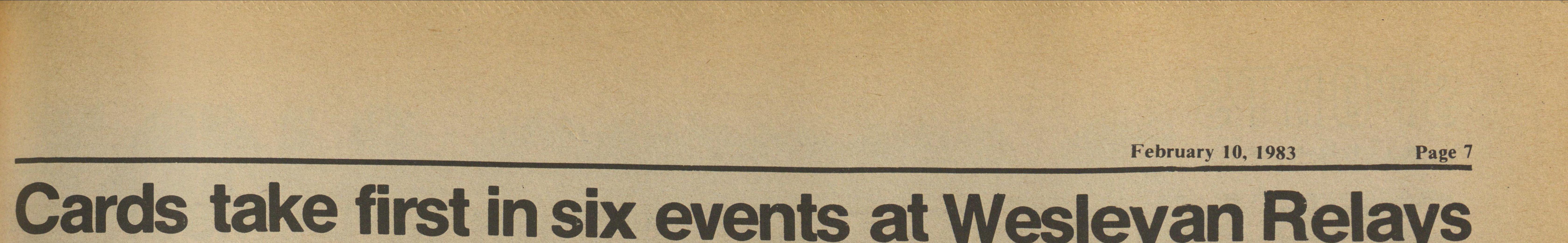 Coach Miller mentioned the efforts begin at 7:00 p.m. long jump, shot put, 440 relay, dis of Bennett, Mike Snyder, Scott Dun tance medley, four-mile relay, and A winning margin of 7.2 seconds mile relay events. was recorded by the Cards in the dis can, Burns and S. Robinson. Bennett NOTE: The next women's track ln the long jump, the team of junior tance medley, as Kevin Chambers, and Snyder, both freshmen basketball meet will be Saturday at the University Sheldon Robinson, and freshman Pat Youngsville, Pennsylvania; Paul Hol- players, completed in the relays before of Cincinnati beginning at I I a.rn