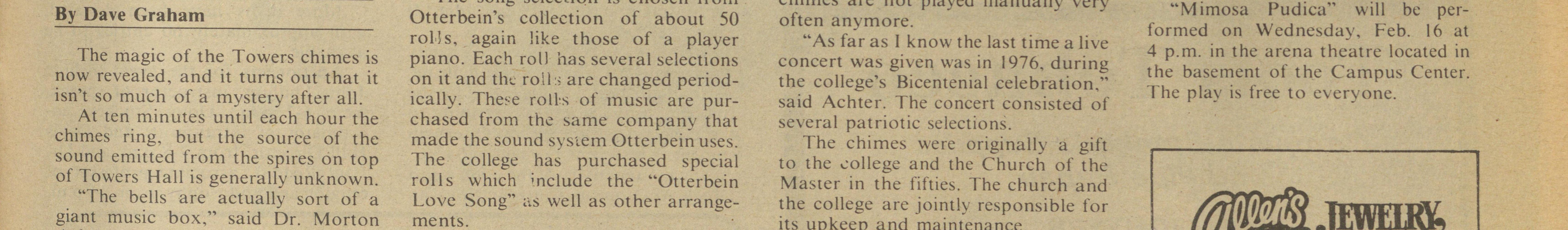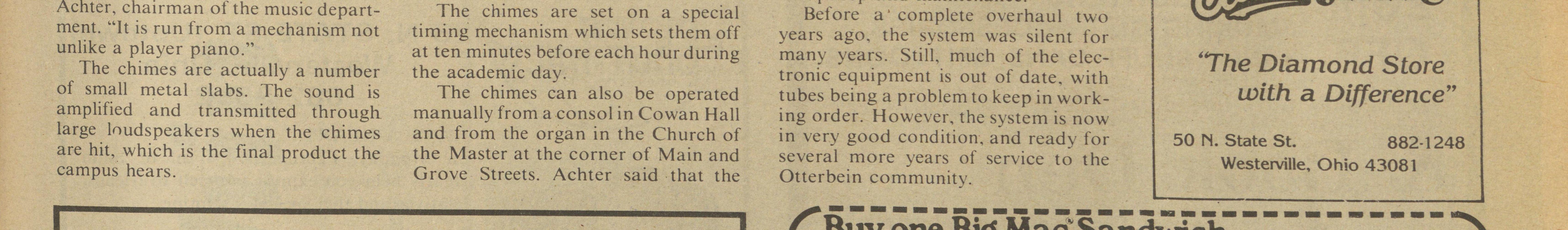 "The bells are actually sort of a giant music box ," said Dr. Morton Achter, chairman of the music department. "It is run from a mechanism not unlike a player piano."