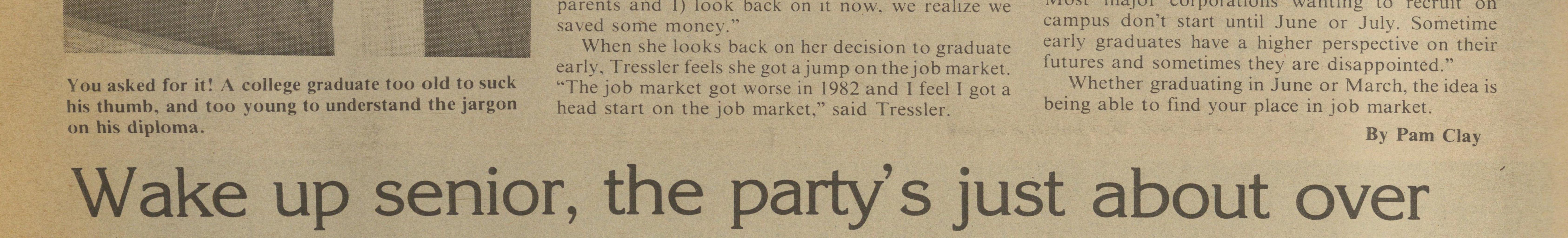 When she looks back on her decision to graduate early. Tressler feels she got a jump on the job market. "The job market got worse in 1982 and I feel I got a head start on the job market," said Tressler.