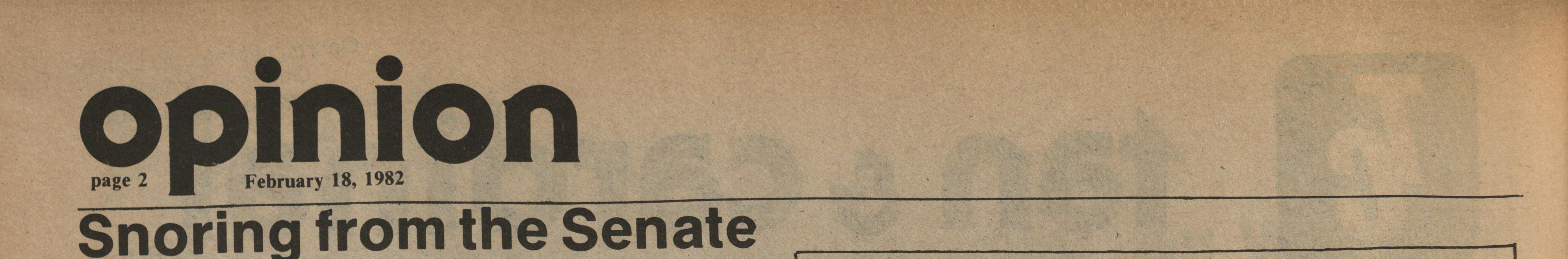 At yesterday's meeting the governing body where all college policy passes before the equal eyes and vote of faculty, administrators, and students, the group called itself to order, read devotions, established a quorum, approved the minutes, read committee reports (which were already printed on the back of each Senator's agenda), made a few announcements and adjourned.
