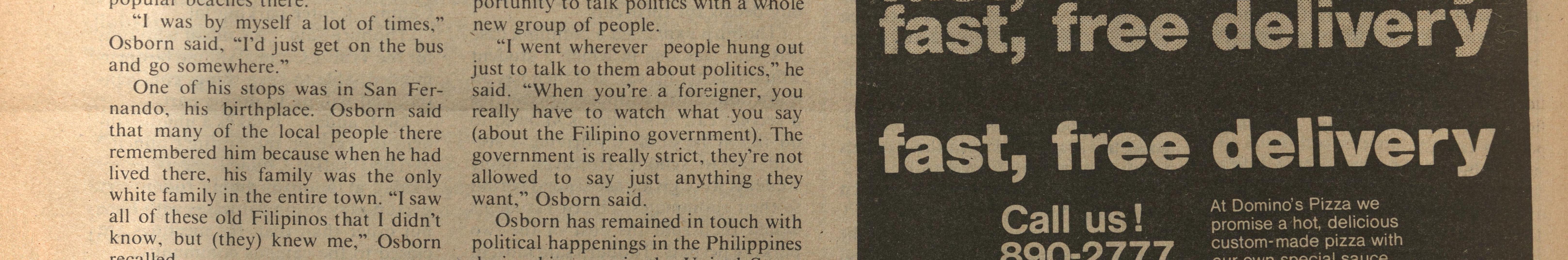 As fa ll t e rm 1981 approached , Osborn , who was born and raised in the Philippines, felt it was t i me to take a vacation fro m school.