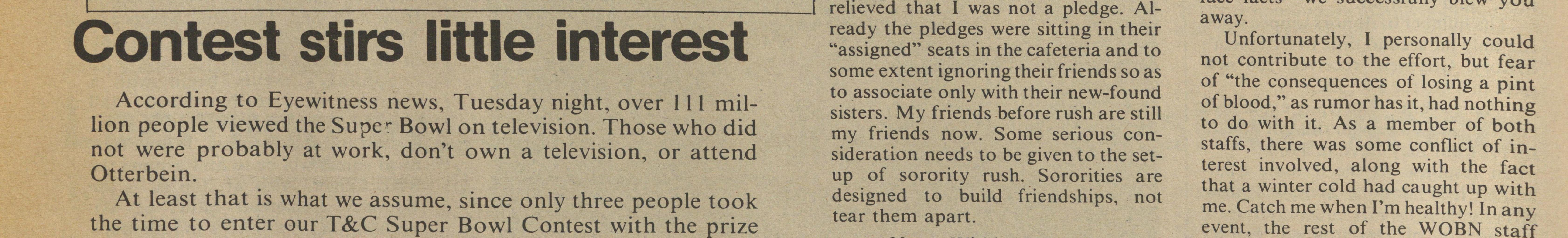 At least that is what we assume, since only three people took the time to enter our T &C Super Bowl Contest with the prize being a chance to voice their sports views in The Extra-Point.
