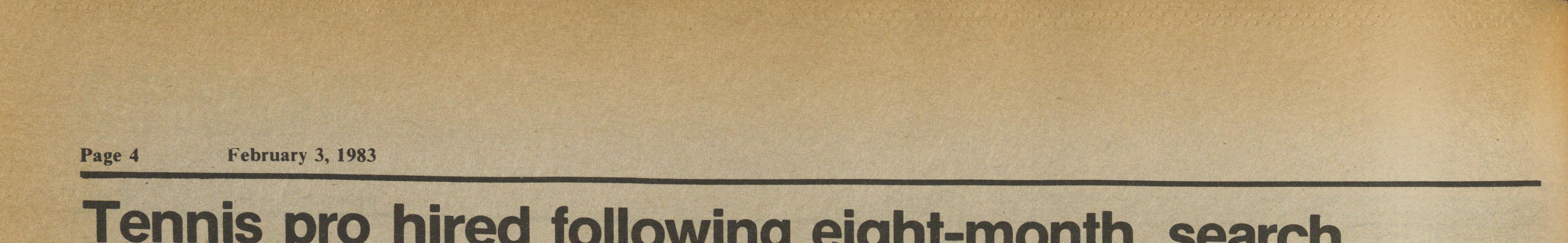 Pohl works in admissions and according to an O.A.C. rule, no person who works in admissions can serve as the coach of a varsity sport. So Pohl was quickly out of the picture, and with only six weeks to go before the opening of the season, the 1983 Otterbein ·tennis season was in serious jeopardy.