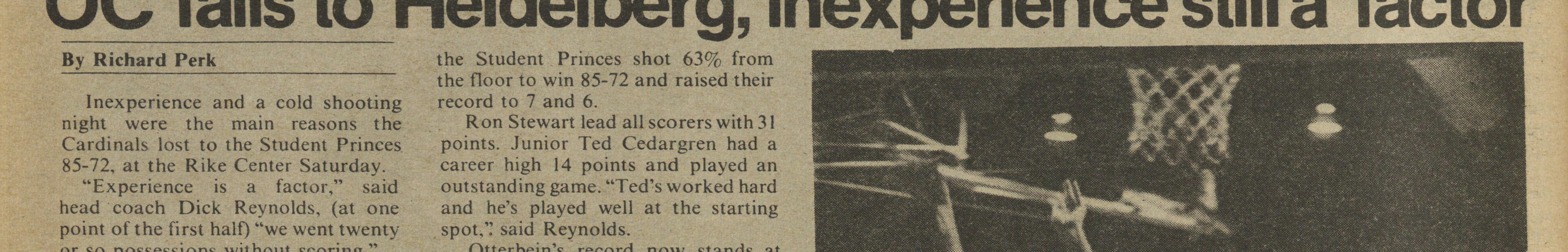 Inexperience and a cold shooting night were the main reasons the Cardinals lost to the Student Princes 85-72, at the Rike Center Saturday.