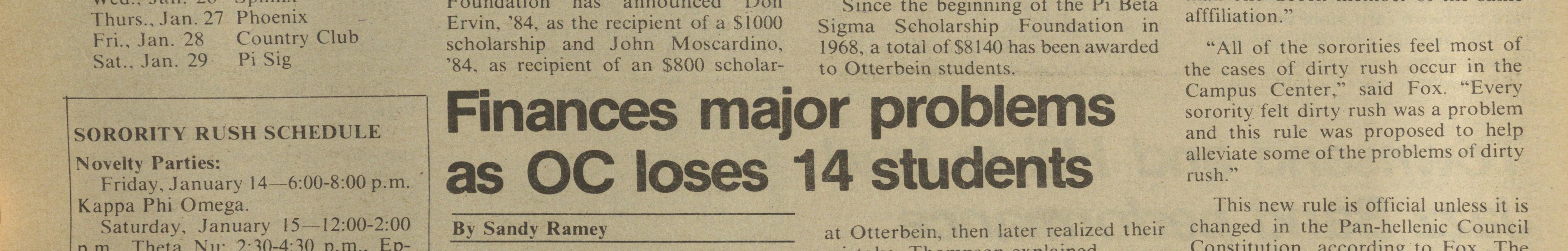 Finances are also a factor for those students attending Otterbein for the first time winter term. "Some students originally interested in Otterbein could not afford it and went to a different school. After a year or two, they have the money to come here, or find it cheaper to commute to school from home," said Thompson.