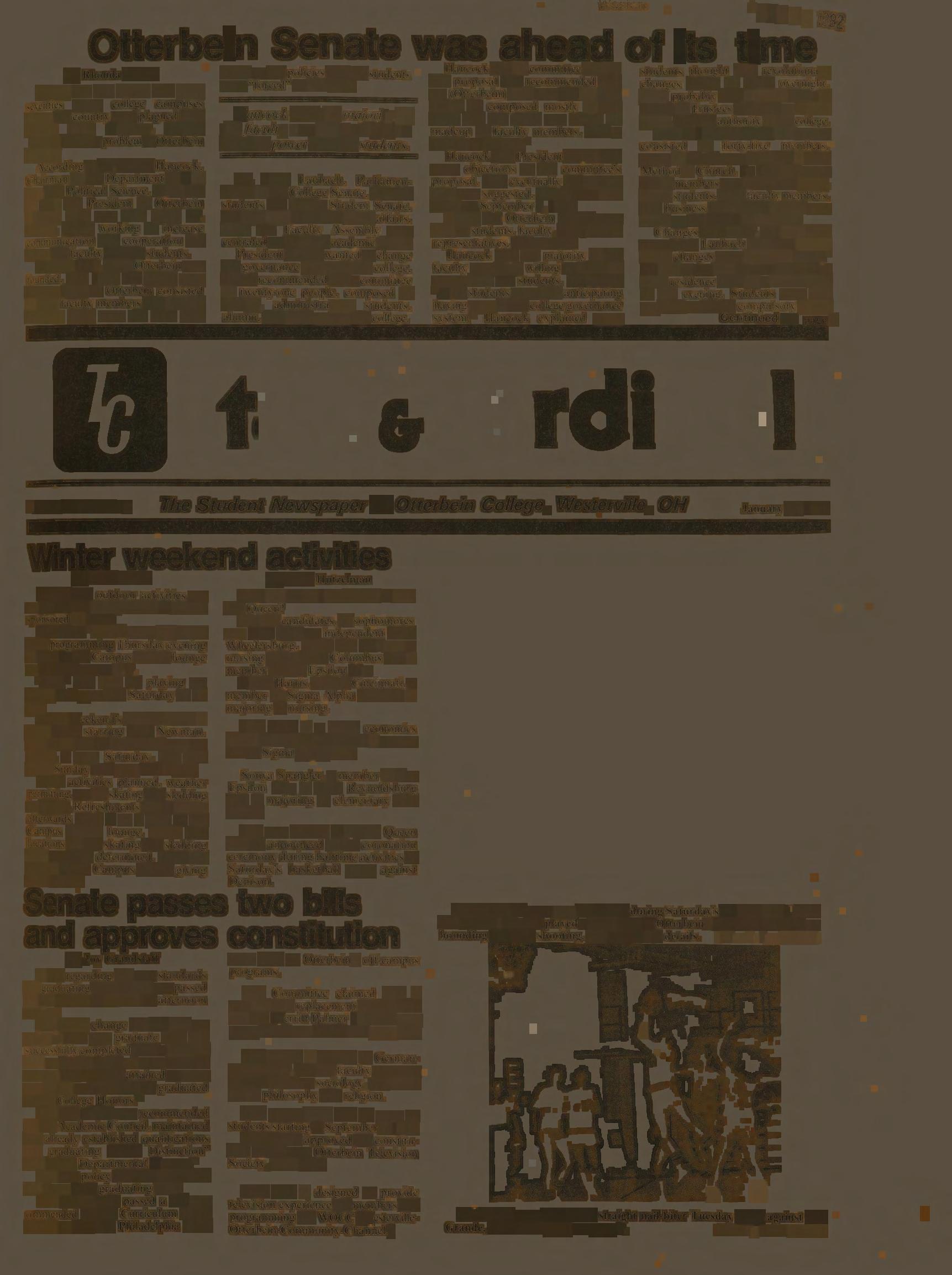 According to Dr. Harold Hancock, Chairman of the Department of 1--I istory and Political Science, in the fall of 1967 the President of Otterbein College. who was then Lynn W Turner. began working to increase communication and cooperation between the faculty and the students Between 1847. when Otterbein was fo unded, and 1970, the major governance body at Otterbein consisted of only faculty members and admin1 istrators. They were the ones who