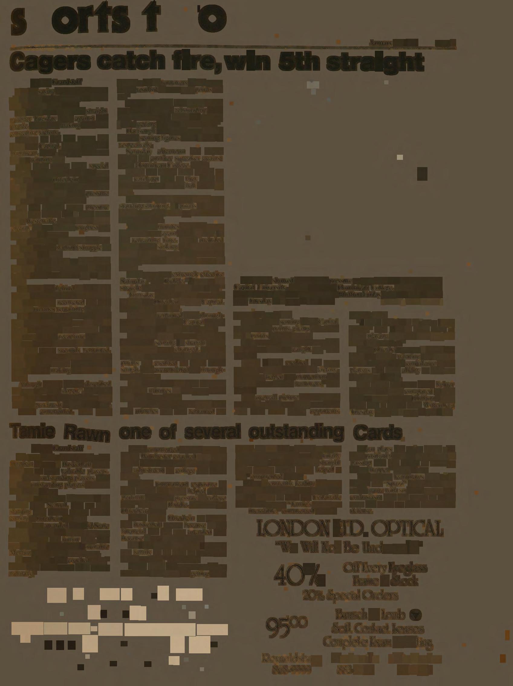 The Cards showed poise under pressure as they beat Rio Grande, 60-62: Capital Uni,·ersity, 67-63; and Ohio Dominican College, 65-63, to stretch their record to 7-6. The Cards travel to Bluffton Friday night and face Wittenberg Tuesday at 7 p.m. in the Rike.