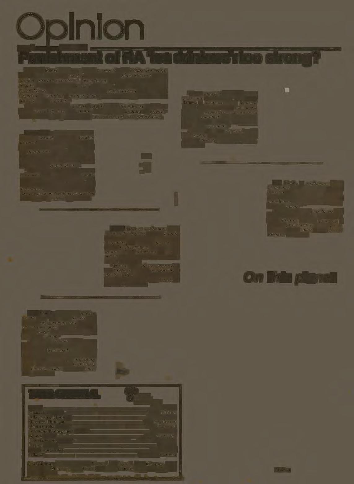 Jan Cook, a sop h o more from Columbu s , said, "Th ey took on that position and kn e w w ha t t h ey were getting into. The v kn ew th e r e would be a punishment if they went t o the party and got caught. "