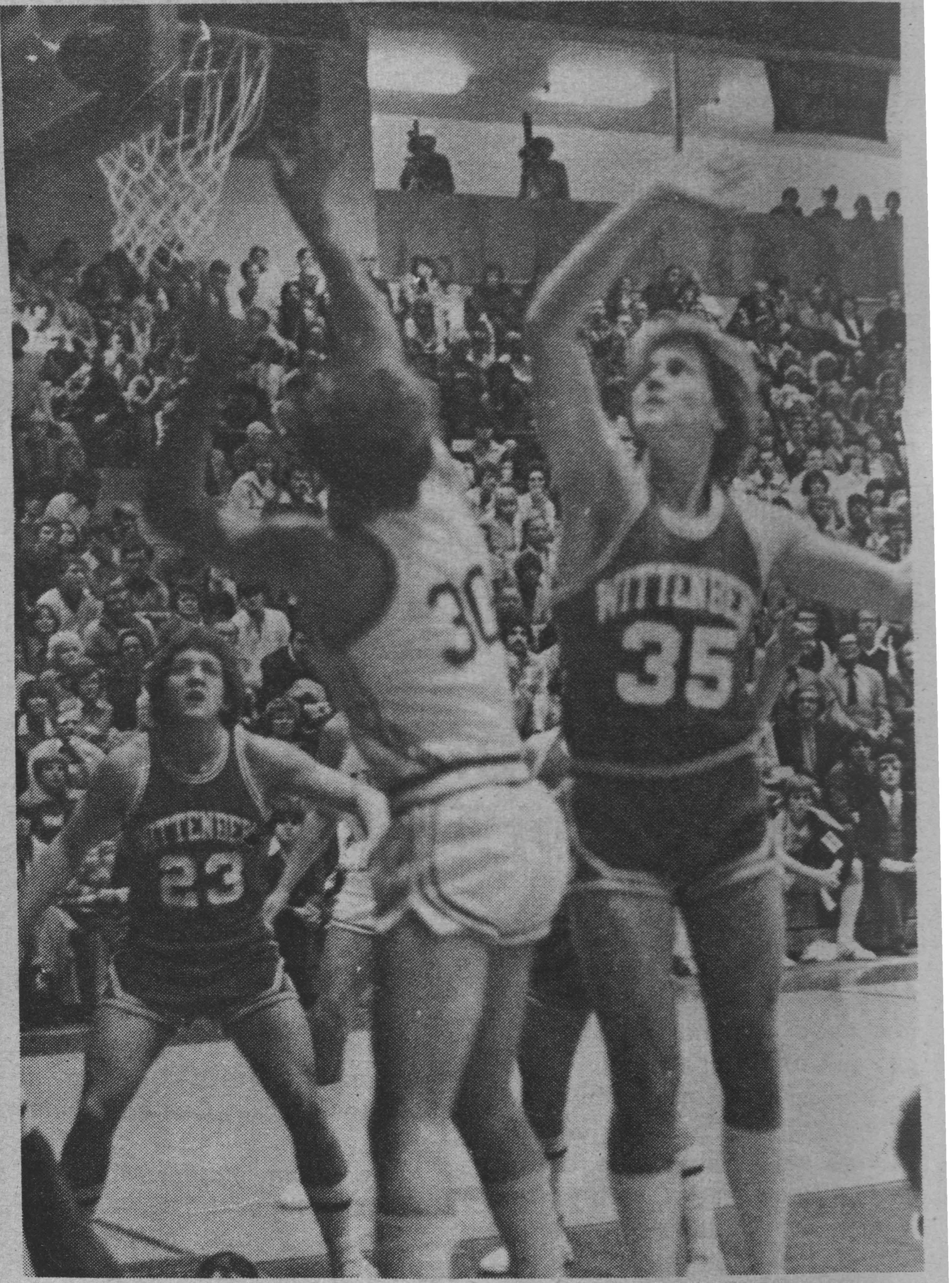 Otterbein battled back from Wittenberg's Rodney Gilbert deficits of 16 points early in the and Curtis each had 16 in the first second half, the p i nnacle of the half but were contained in the seccomeback being at 6: 10 left i n the ond per i od, f i n i sh i ng the game game with Wittenberg ahead w i th 18 and 24 po nts respectively. 59-58 when 6-2 Card nal forward Steve Johnston drove for a go Otterbe i n won the game at the ahead layup and was fouled, foul line as they hit 27 of 35 for cann ng the extra point for a 61-59 77 percent. W i ttenberg got to the Otterbe n edge. l ne only 10 times, hitt i ng only f i ve of the opportunit es for 50 percent.
