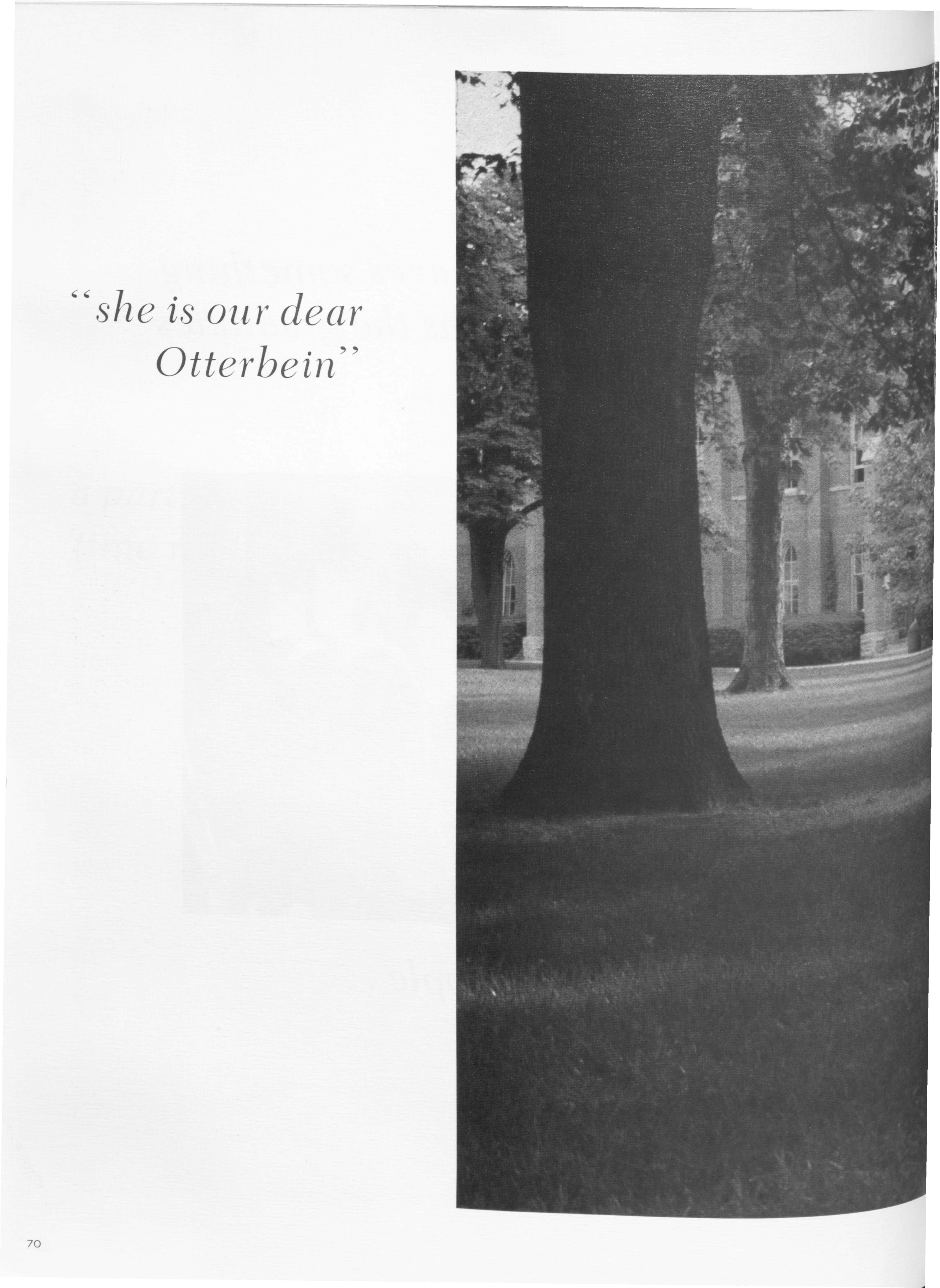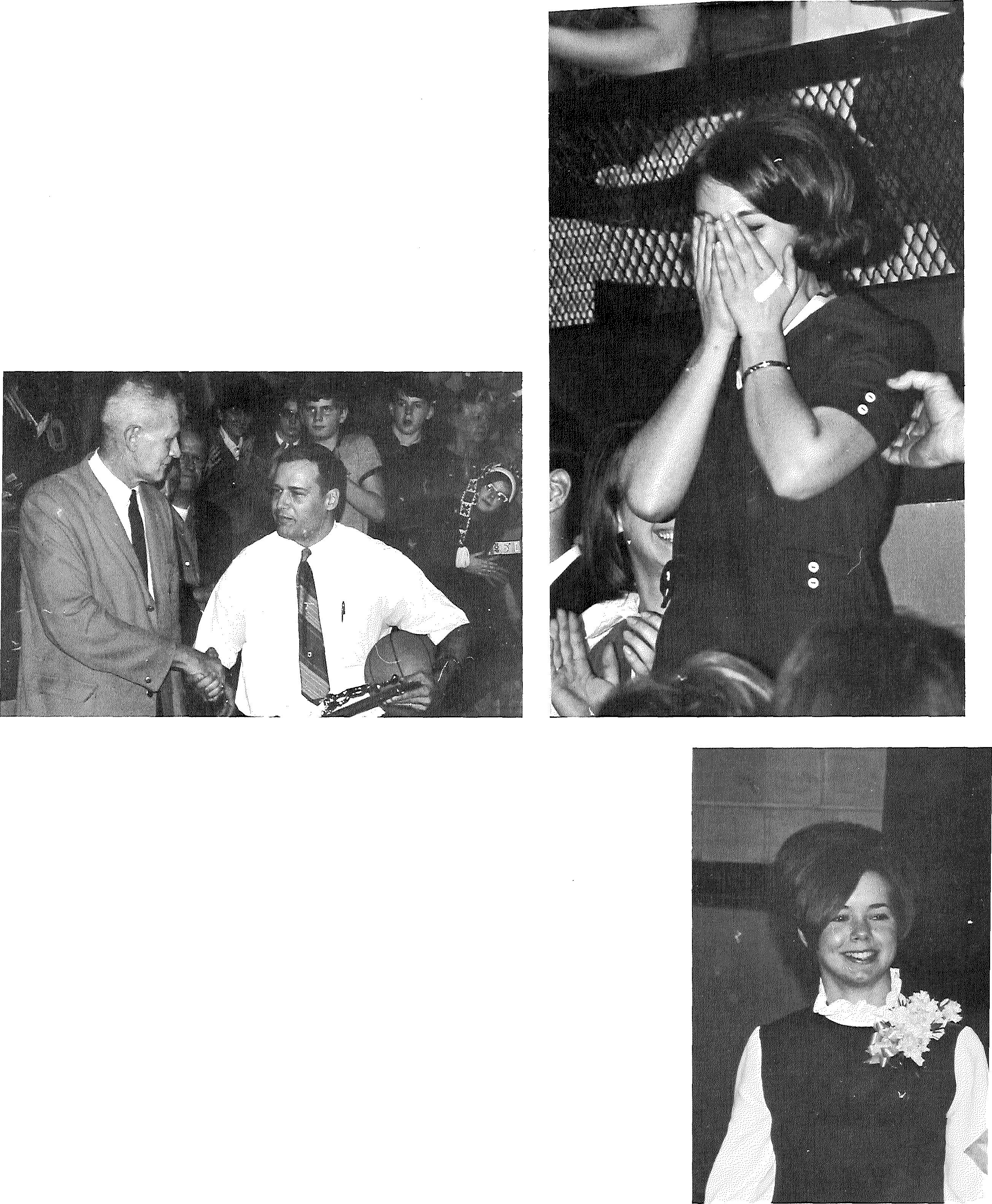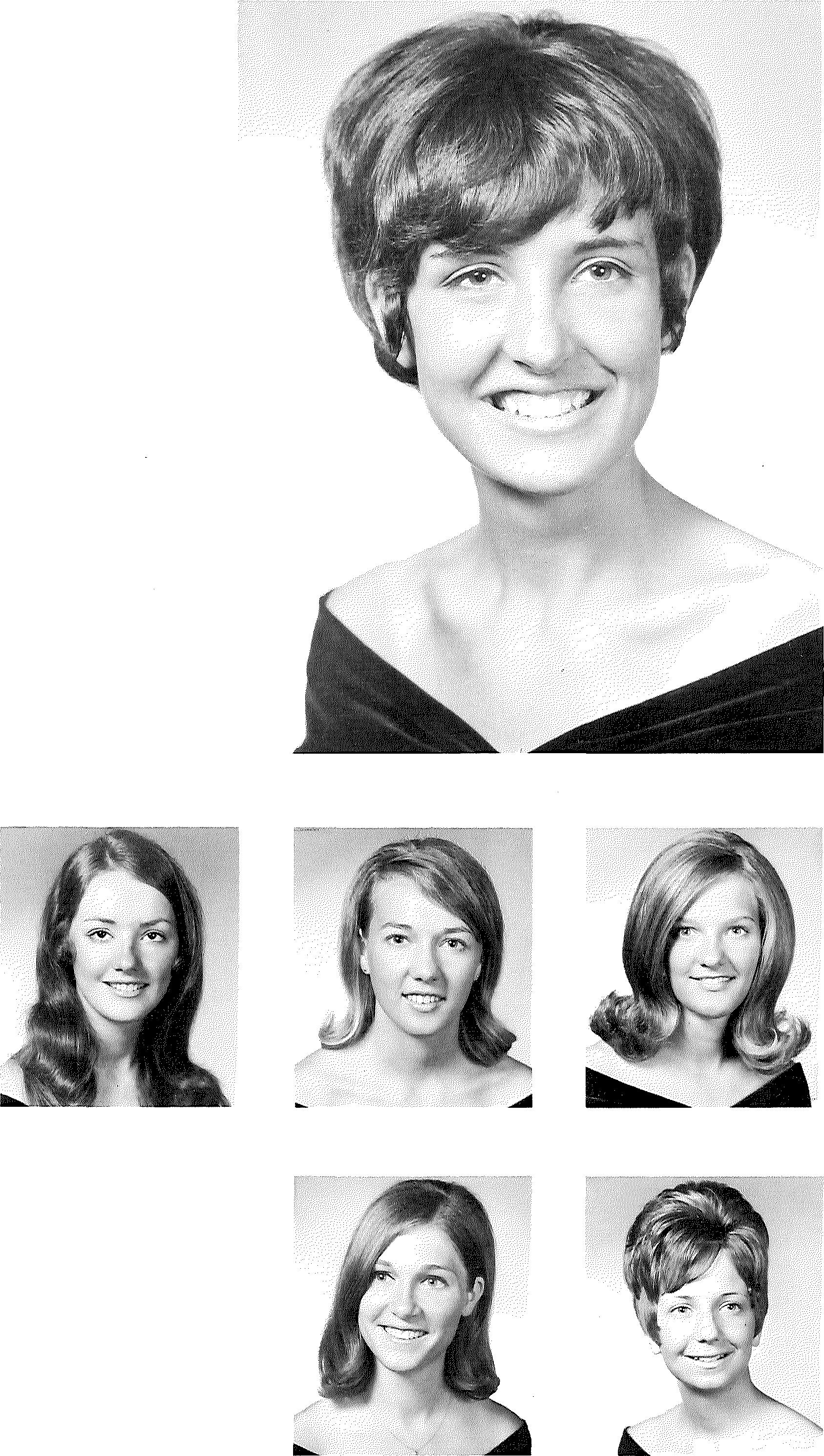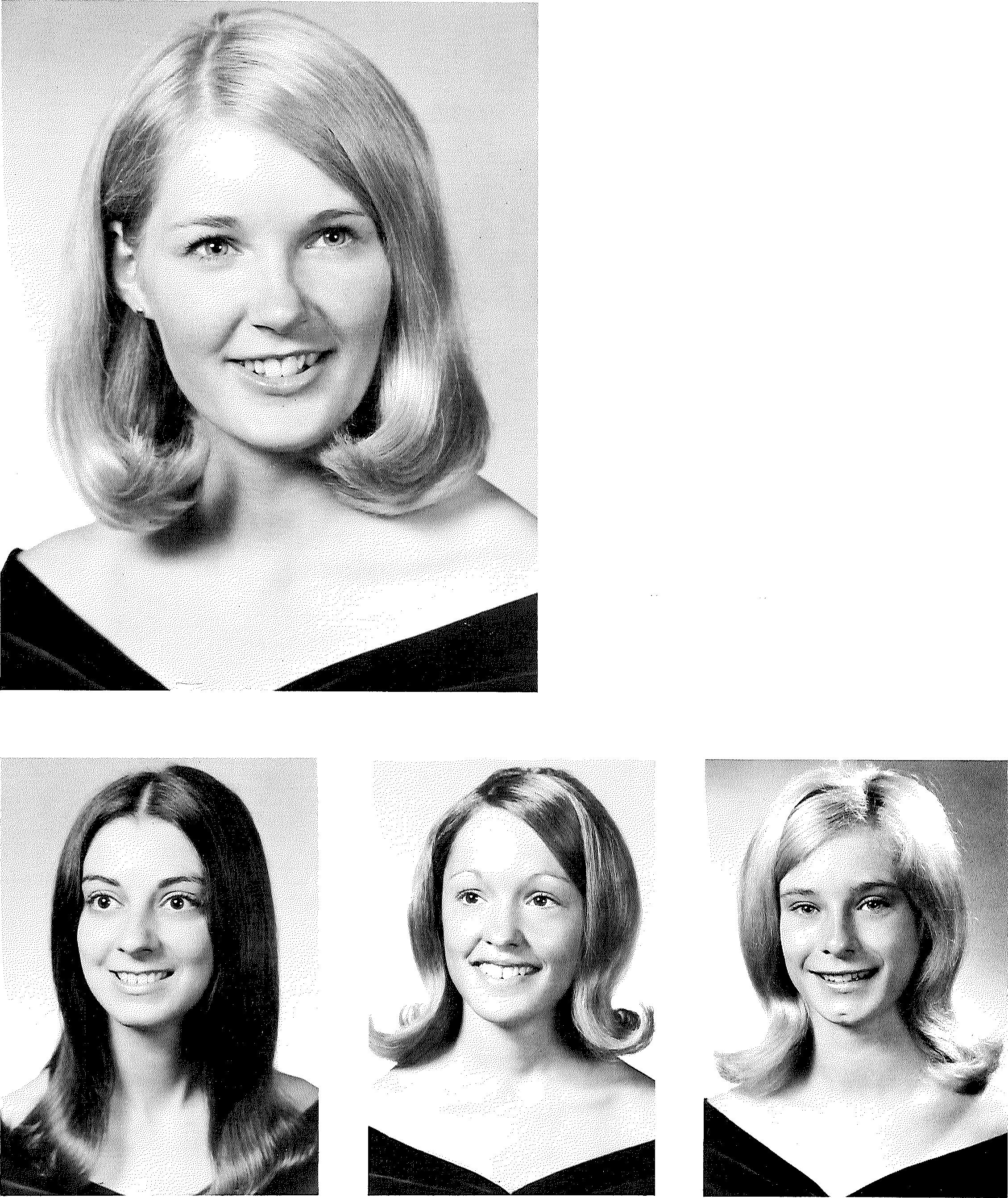 Lightest and loveliest of all Otterbein days is May Day, a highlight of which is the coronation of the Queen. This year the Otterbein student body chose Miss Carol Strout to reign as the campus "'Fair Lady." Other members of the all-junior court included Rita Schumacher, Maid of Honor; Nancy Fenstermaker, First Attendant; and Wendy Roush, Second Attendant.