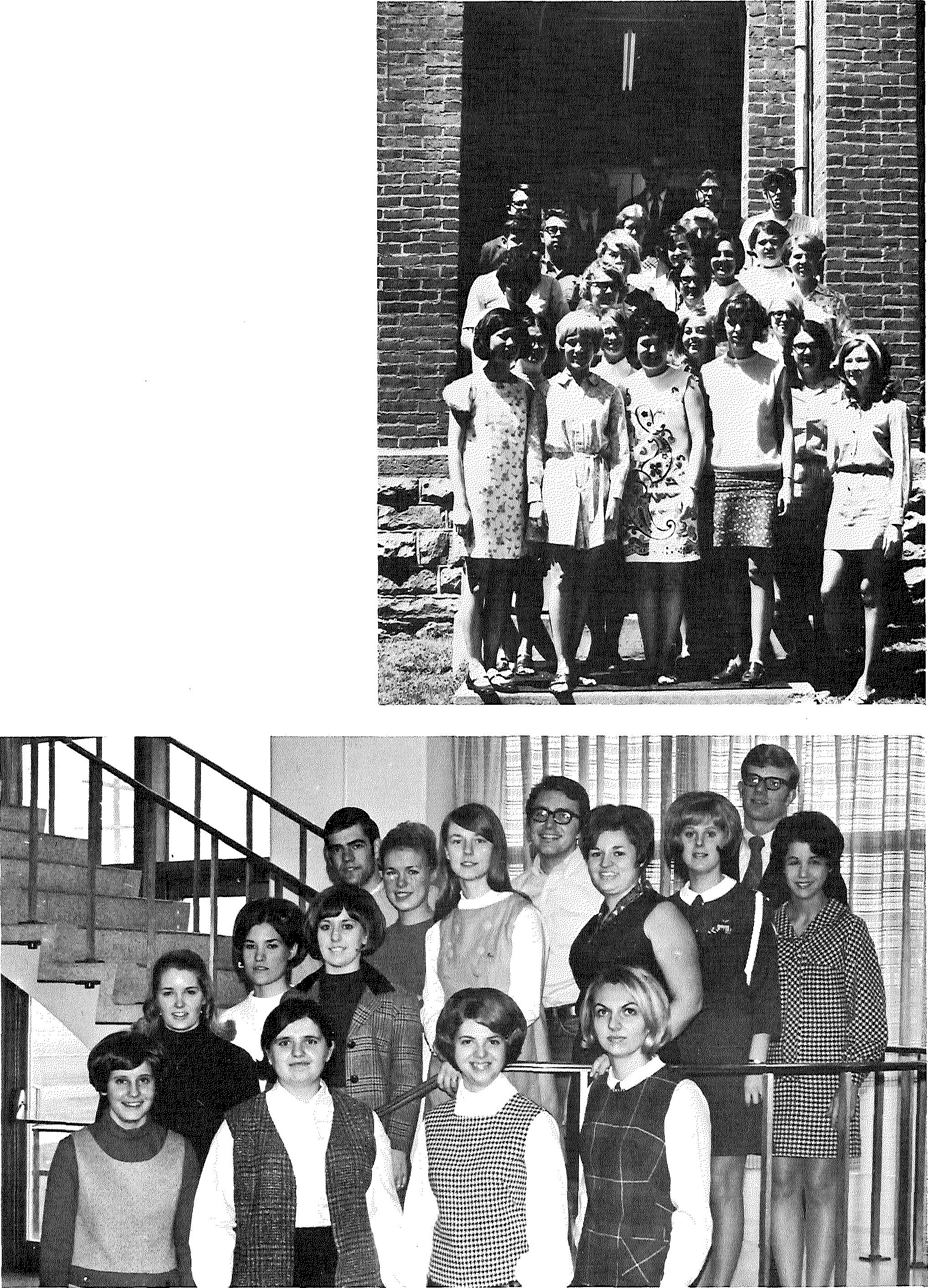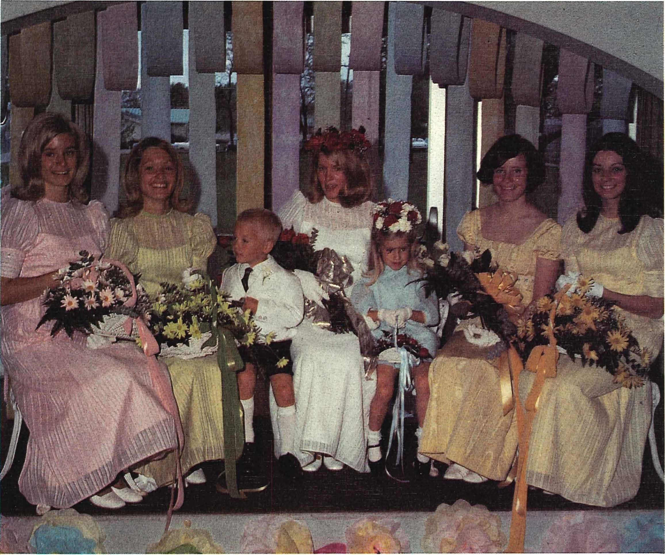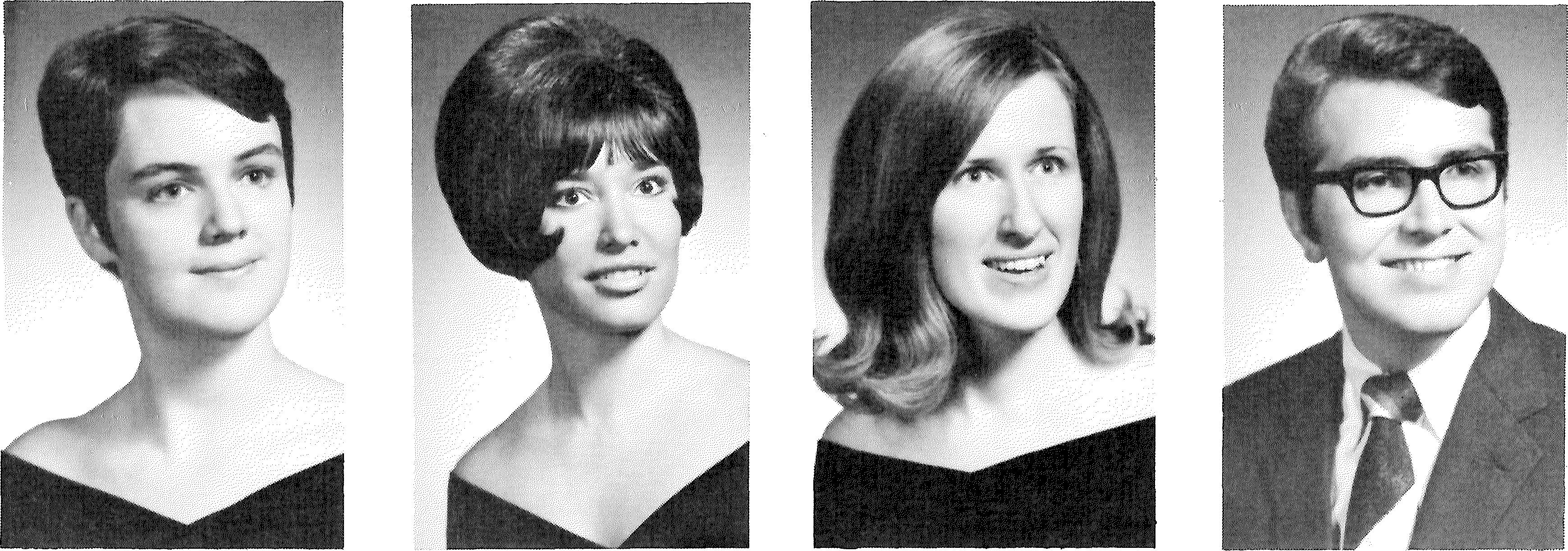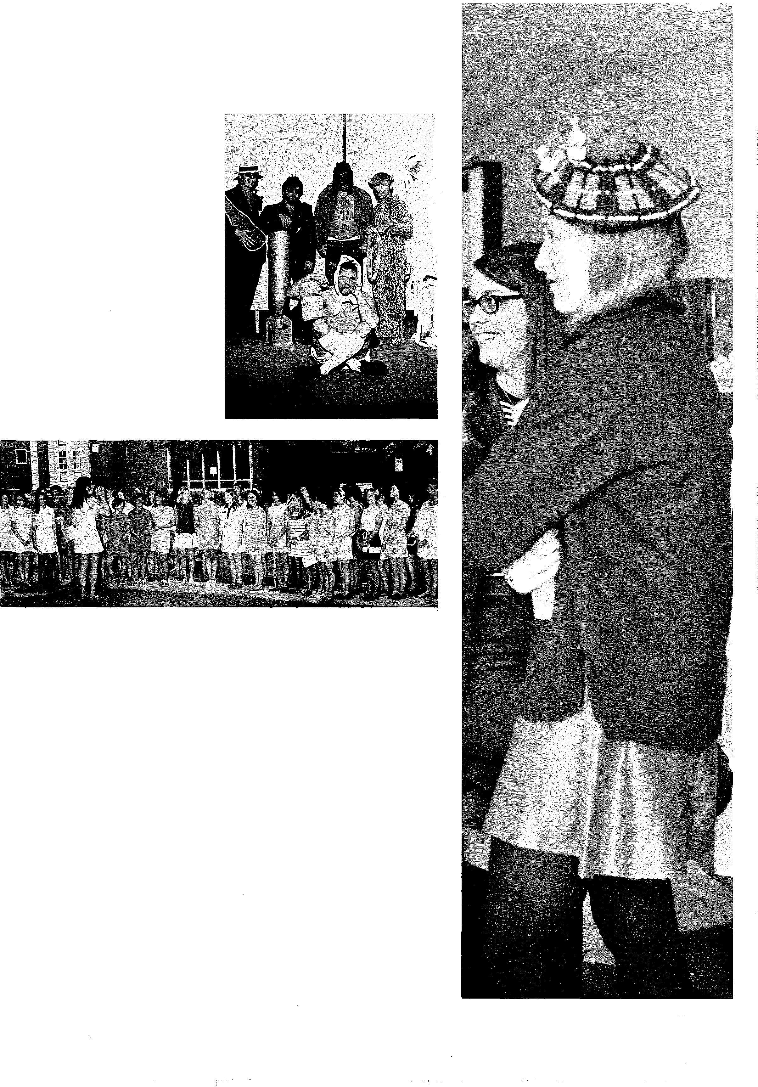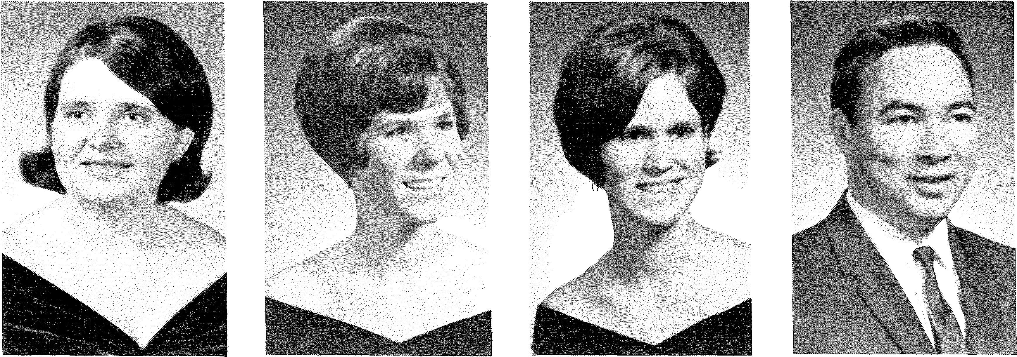 Lightest and loveliest of all Otterbein days is May Day, a highlight of which is the coronation of the Queen. This year the Otterbein student body chose Miss Carol Strout to reign as the campus "'Fair Lady." Other members of the all-junior court included Rita Schumacher, Maid of Honor; Nancy Fenstermaker, First Attendant; and Wendy Roush, Second Attendant.