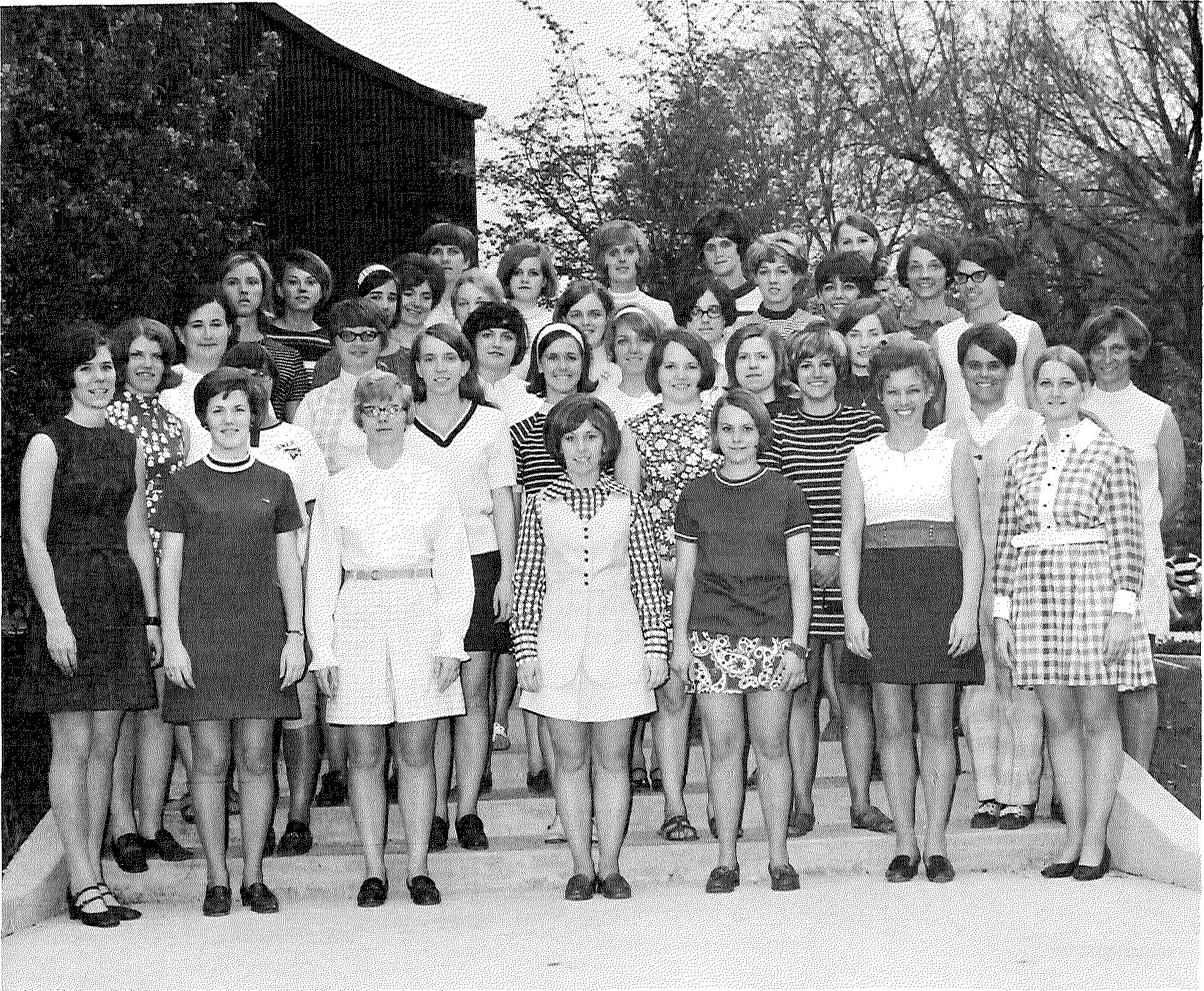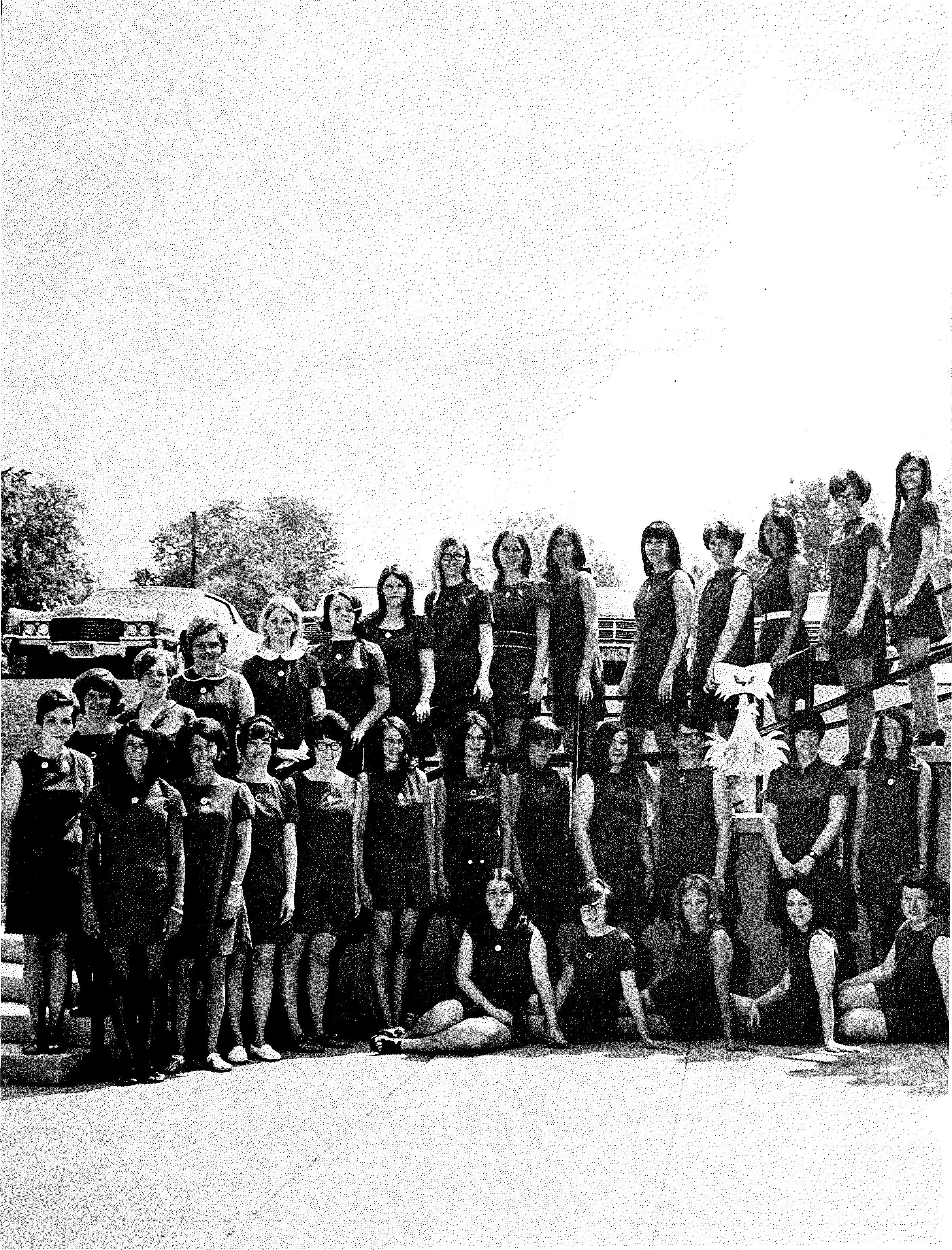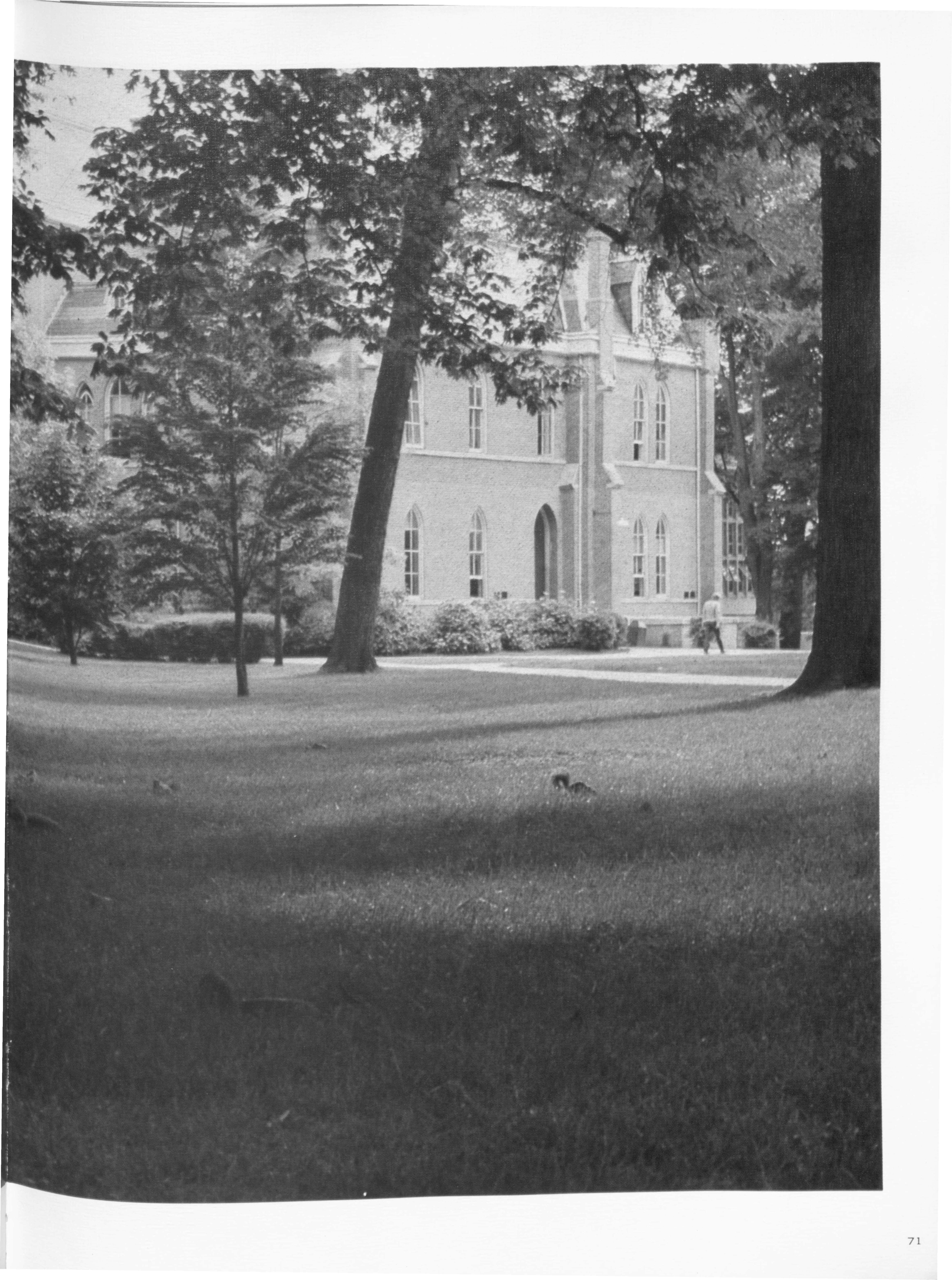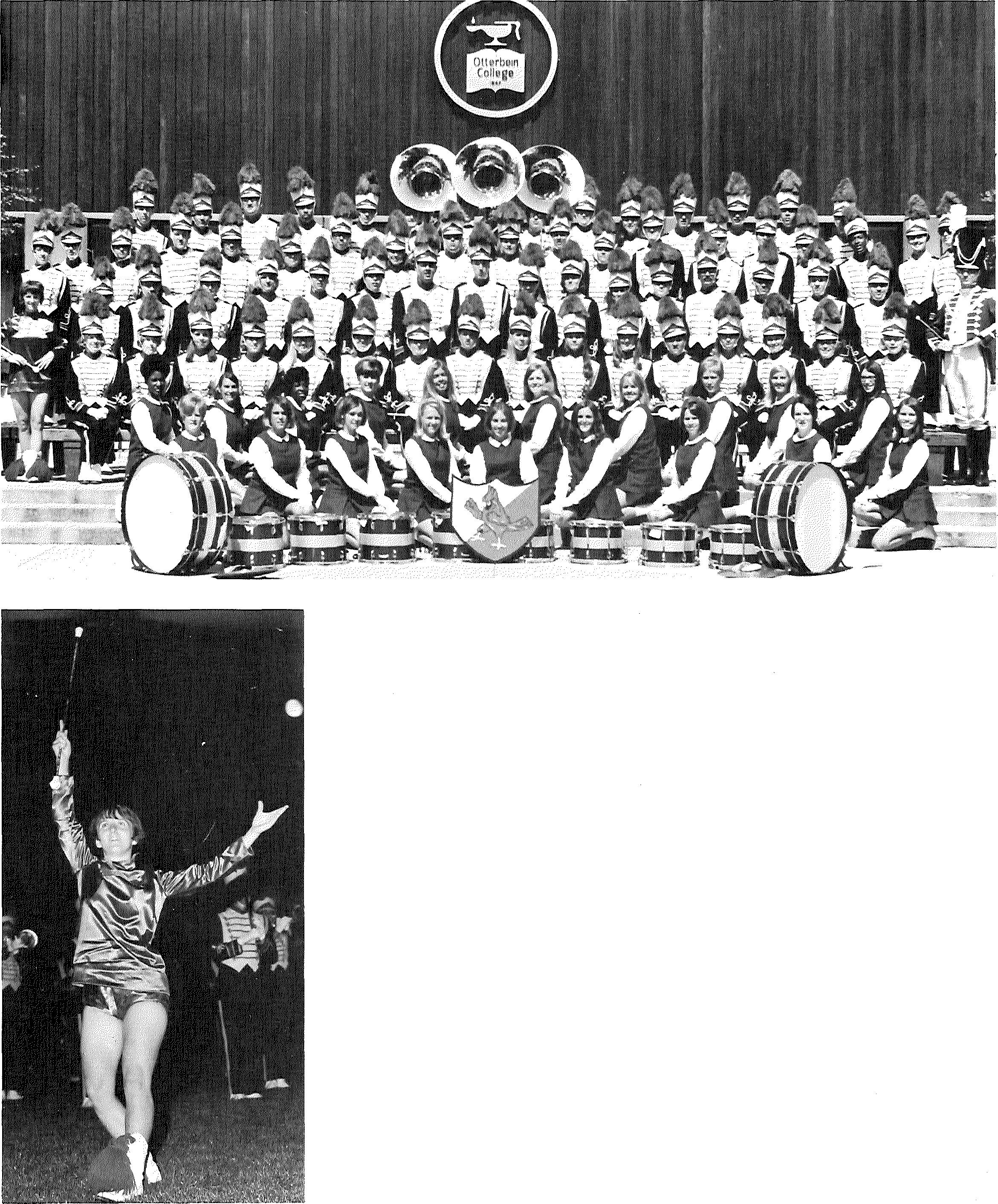 Lightest and loveliest of all Otterbein days is May Day, a highlight of which is the coronation of the Queen. This year the Otterbein student body chose Miss Carol Strout to reign as the campus "'Fair Lady." Other members of the all-junior court included Rita Schumacher, Maid of Honor; Nancy Fenstermaker, First Attendant; and Wendy Roush, Second Attendant.