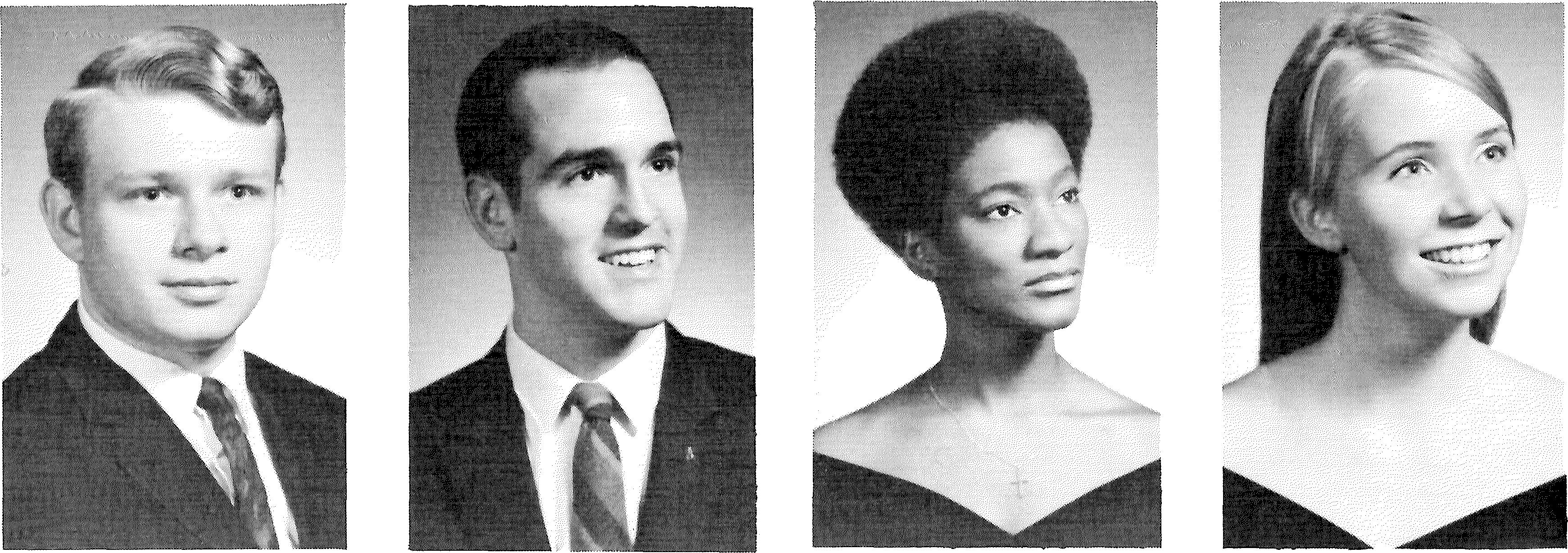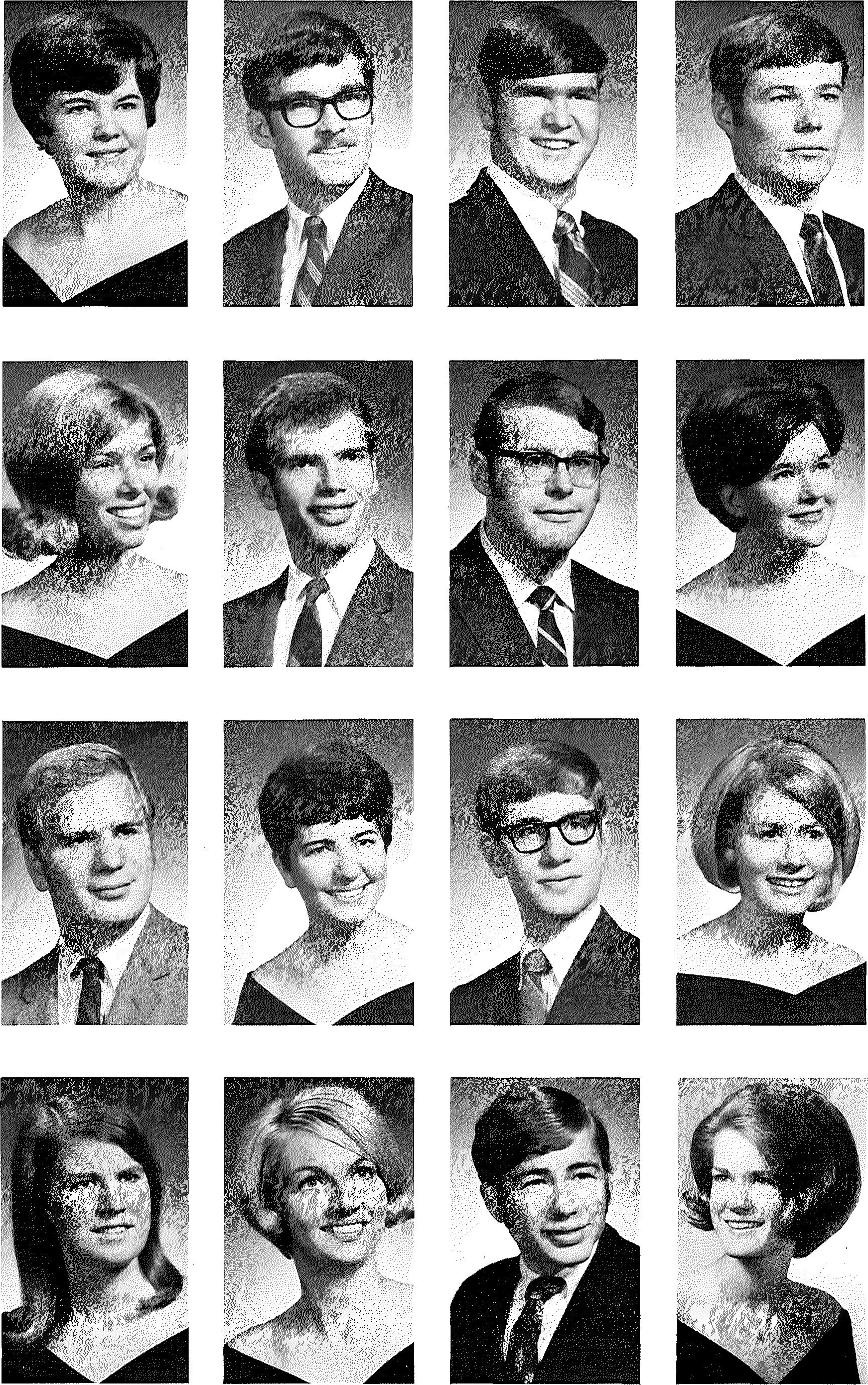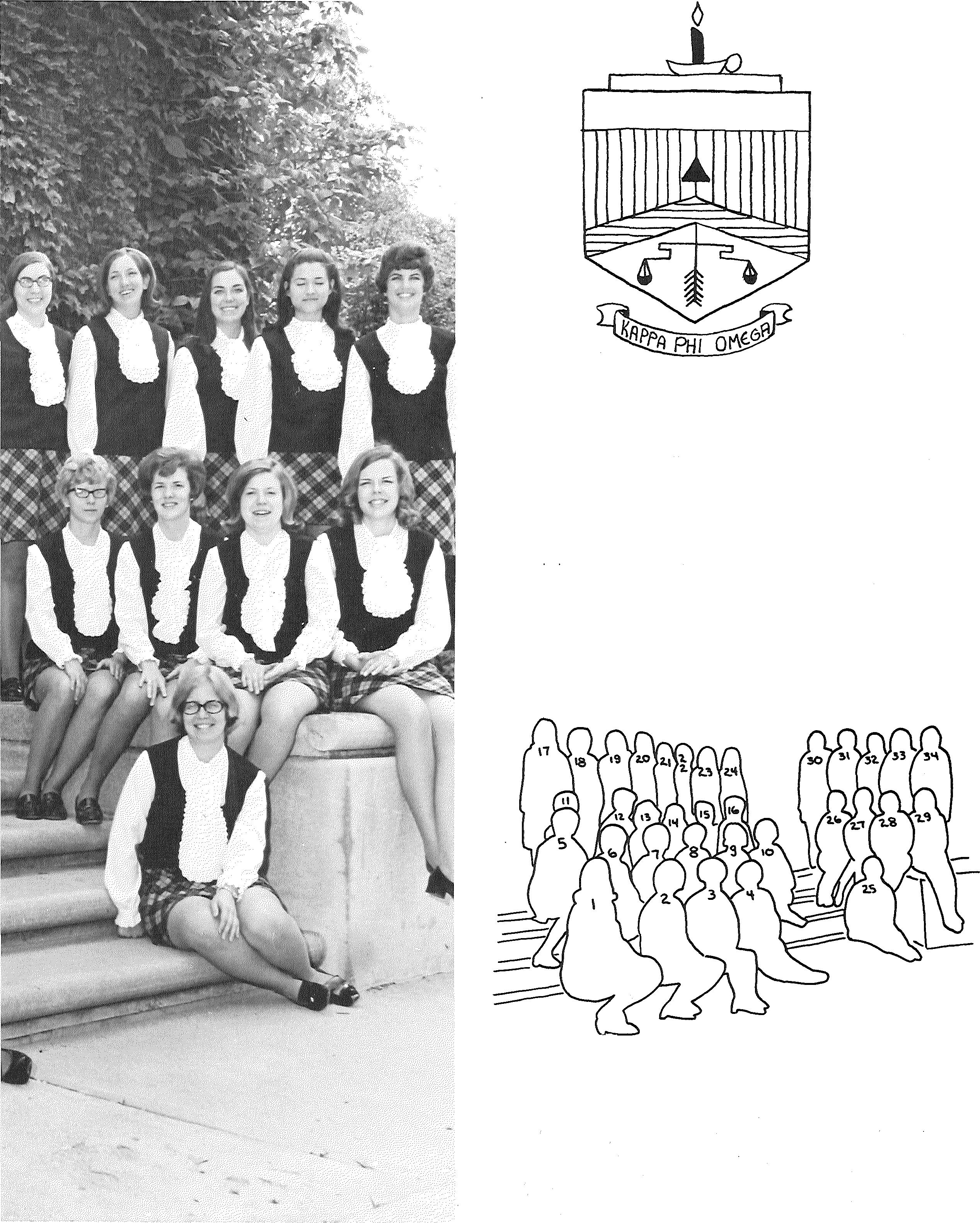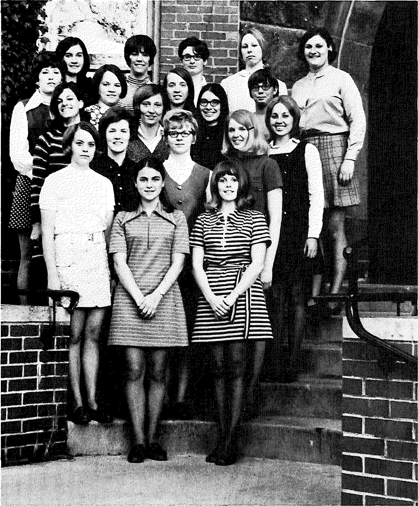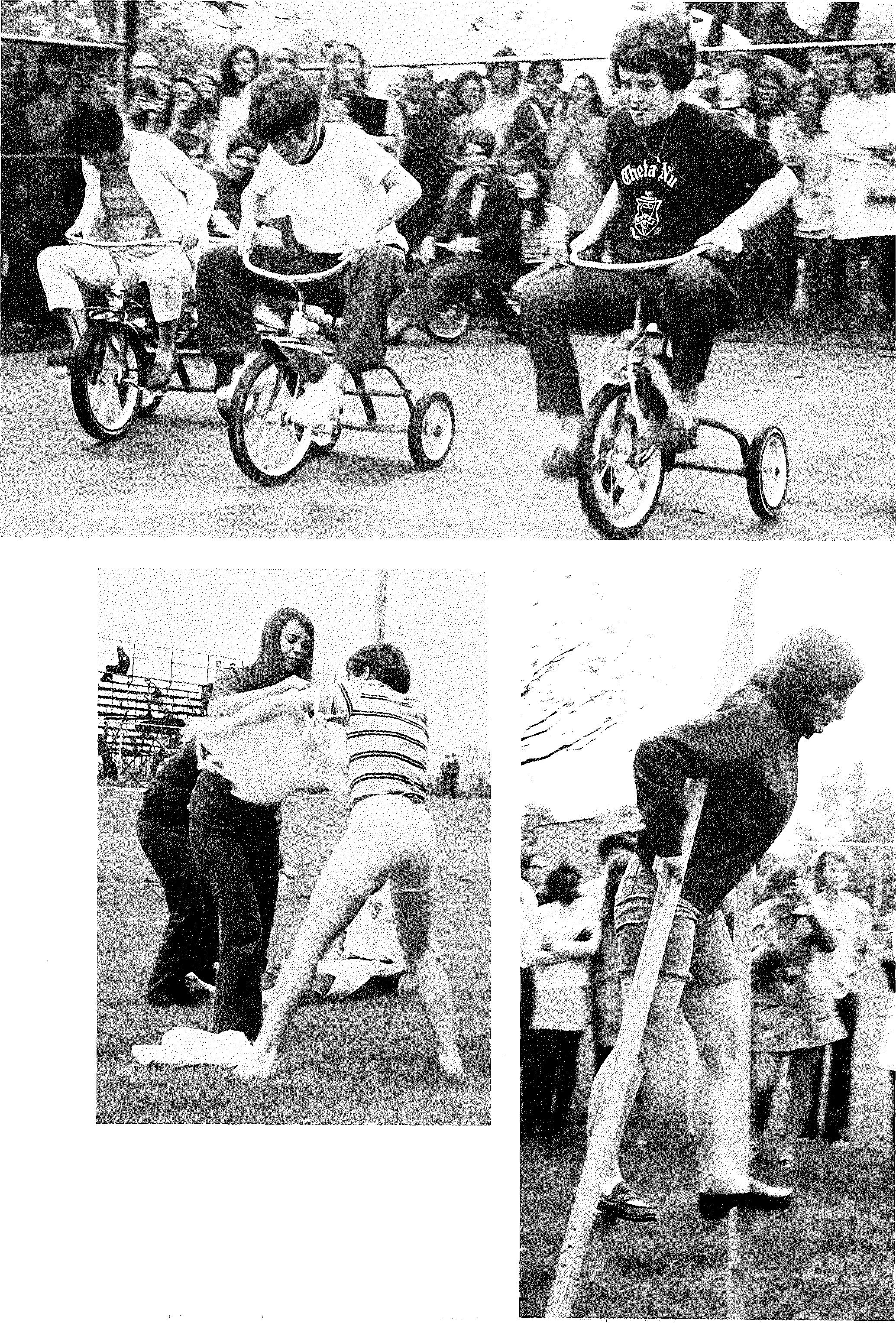Lightest and loveliest of all Otterbein days is May Day, a highlight of which is the coronation of the Queen. This year the Otterbein student body chose Miss Carol Strout to reign as the campus "'Fair Lady." Other members of the all-junior court included Rita Schumacher, Maid of Honor; Nancy Fenstermaker, First Attendant; and Wendy Roush, Second Attendant.