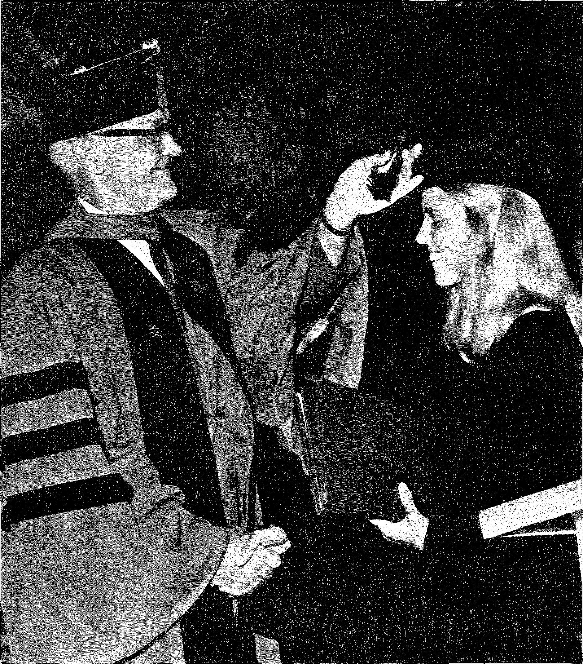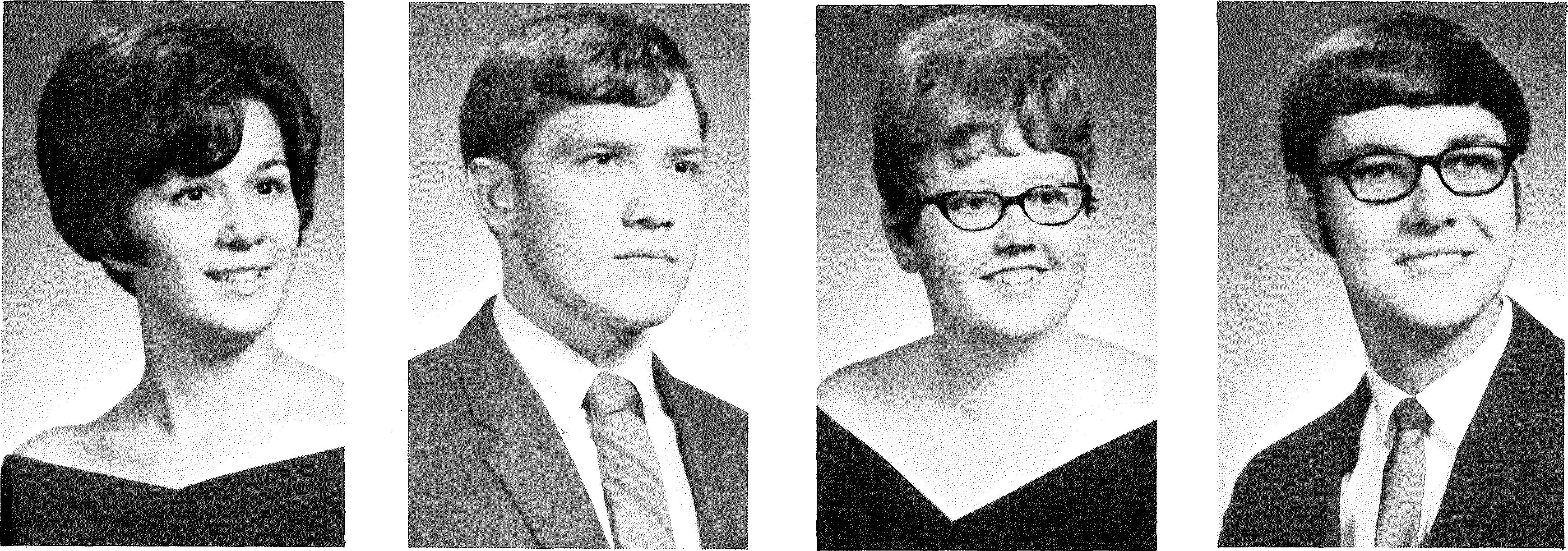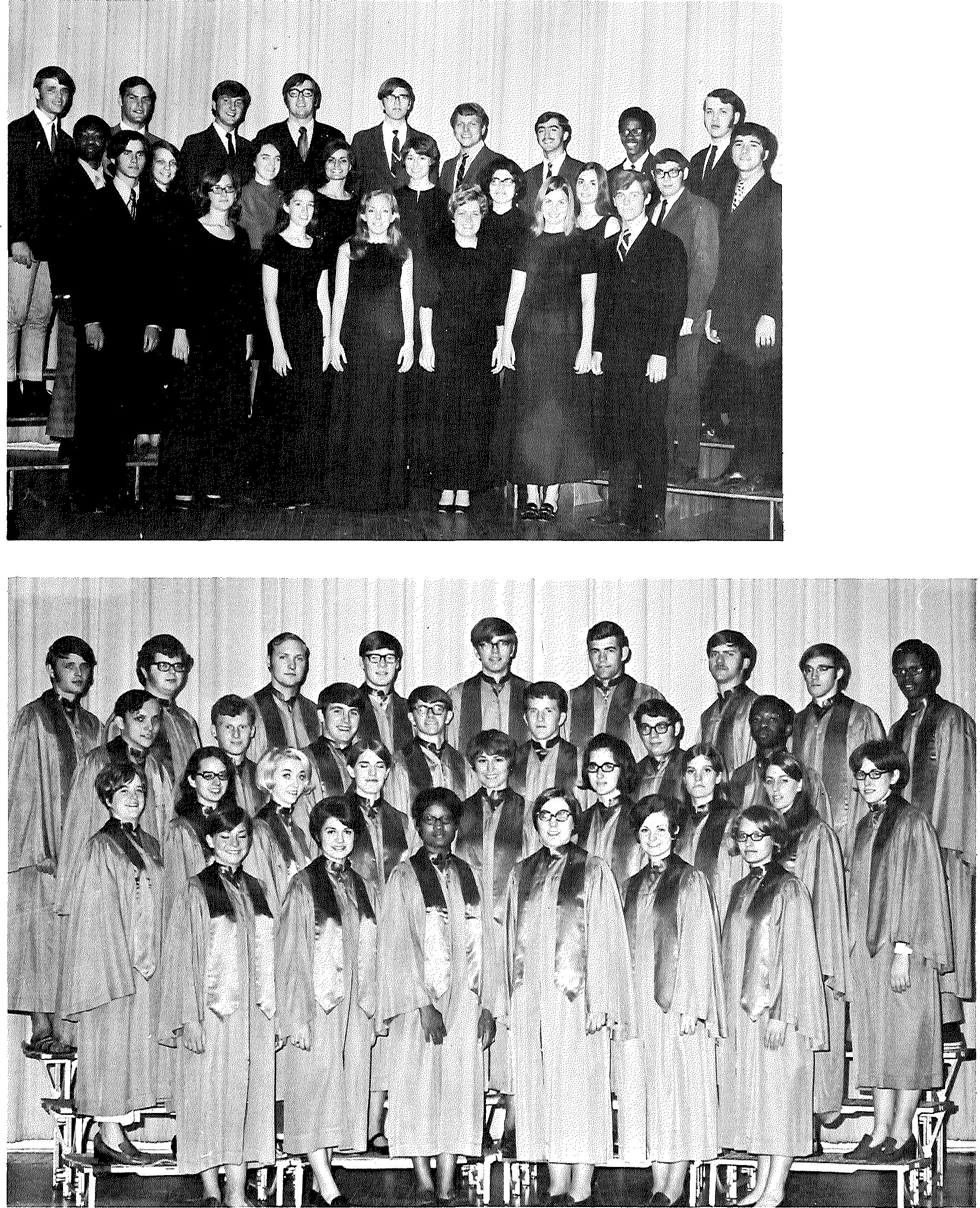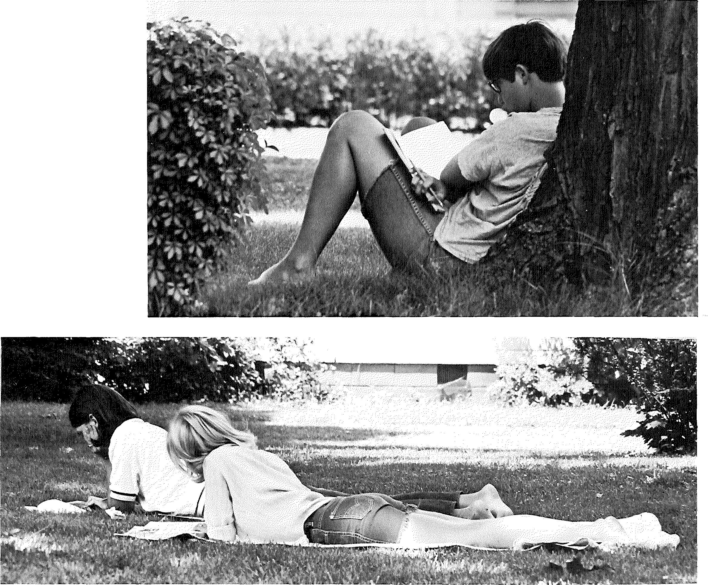 Lightest and loveliest of all Otterbein days is May Day, a highlight of which is the coronation of the Queen. This year the Otterbein student body chose Miss Carol Strout to reign as the campus "'Fair Lady." Other members of the all-junior court included Rita Schumacher, Maid of Honor; Nancy Fenstermaker, First Attendant; and Wendy Roush, Second Attendant.